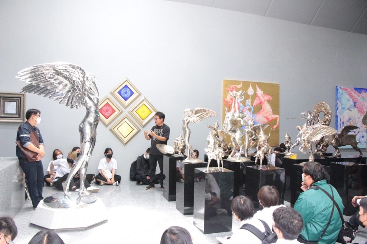 เมื่อวันที่ 13 สิงหาคม 2565 หลักสูตรศิลปะและการออกแบบ (ศป.บ.) มหาวิทยาลัยราชภัฏเชียงใหม่ นำโดย อ.เอกพงศ์ สุริยงค์ ประธานหลักสูตรศิลปะและการออกแบบ พร้อมด้วย อ.ดร. กนิษฐา พวงศรี และ คุณพิชิตไพร สำราญ นักวิชาการศึกษา นำนักศึกษาหลักสูตรศิลปะและการออกแบบชั้นปีที่ 2 และ ชั้นปีที่ 3 เข้าร่วมกิจกรรมในโครงการศึกษาและฝึกปฏิบัติแหล่งเรียนรู้ทางด้านศิลปะและการออกแบบ โดยได้รับเกียรติจาก อ.ธงชัย ศรีสุขประเสริฐ เป็นวิทยากรให้ความรู้แก่นักศึกษาเรื่อง “กระบวนทัศน์และการสร้างสรรค์ผลงานให้เกิดคุณค่าทางศิลปะและการออกแบบ” พร้อมนำเยี่ยมชมผลงานศิลปะภายในพิพิธภัณฑ์หอศิลป์เทา