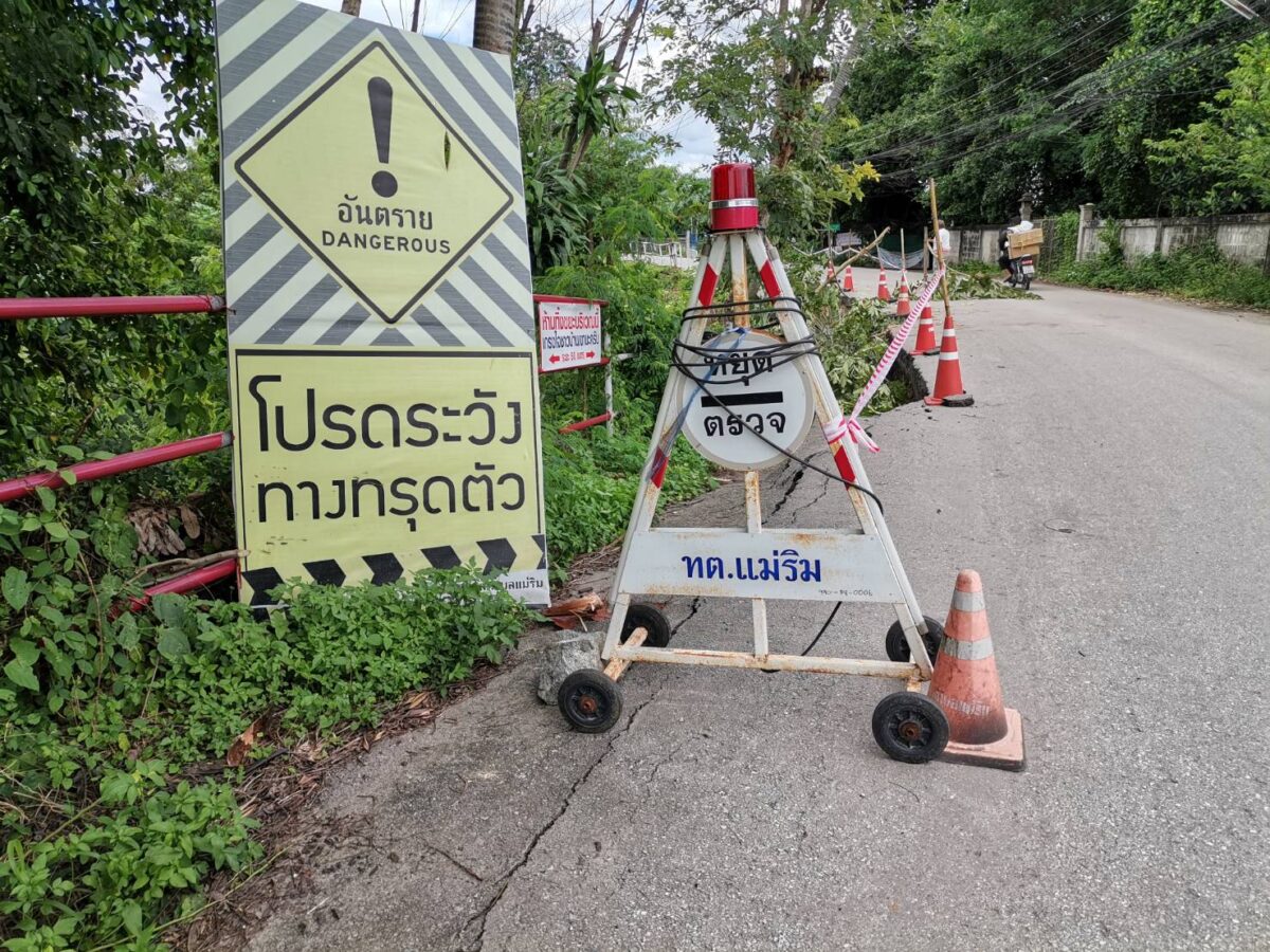 ฤทธิ์มู่หลาน สร้างมวลน้ำกัดเซาะตลิ่งน้ำแม่ริม ช่วงบ้านทรายมูลทรุดตัว