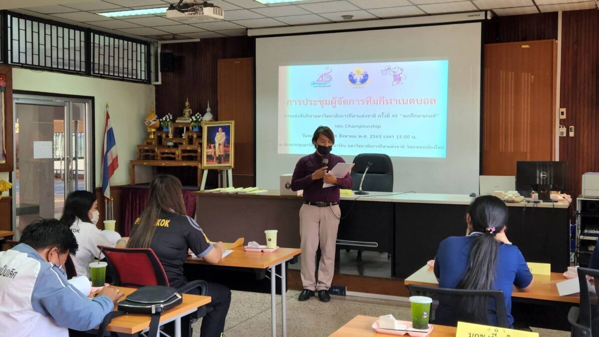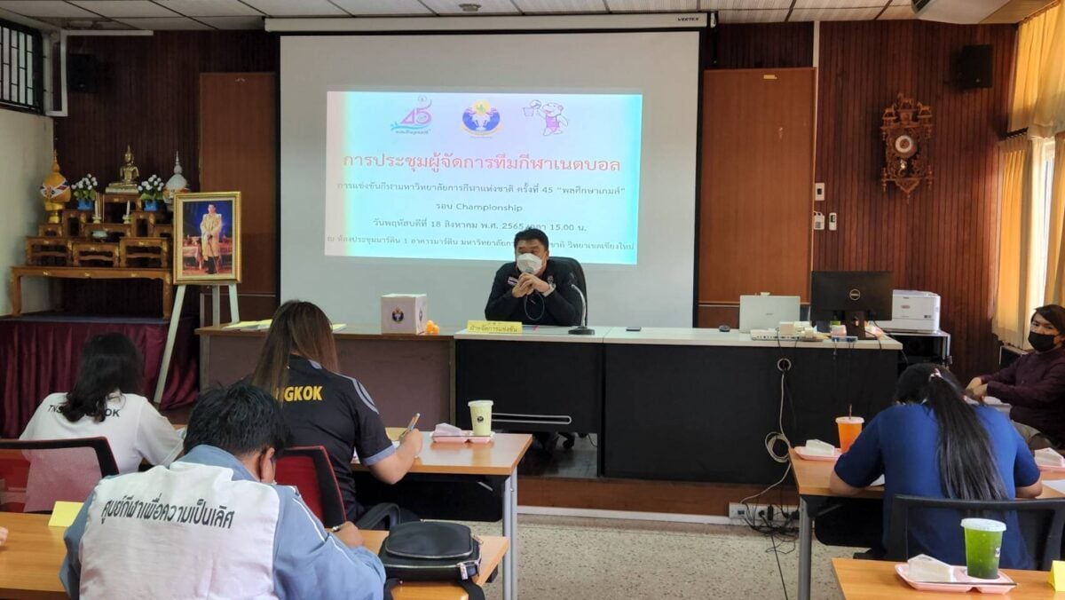 การแข่งขันกีฬามหาวิทยาลัยการกีฬาแห่งชาติ ครั้งที่ 45 “พลศึกษาเกมส์” รอบ Championshipระหว่างวันที่ 19 – 22 สิงหาคม 2565 ณ โดมเหลืองอร่าม มหาวิทยาลัยการกีฬาแห่งชาติ วิทยาเขตเชียงใหม่ กีฬาเนตบอล ทีมแข่งขัน 1.มกช.กรุงเทพ 2.มกช.ชลบุรี 3.มกช.เชียงใหม 4.มกช.มหาสารคาม 5.มกช.อ่างทอง