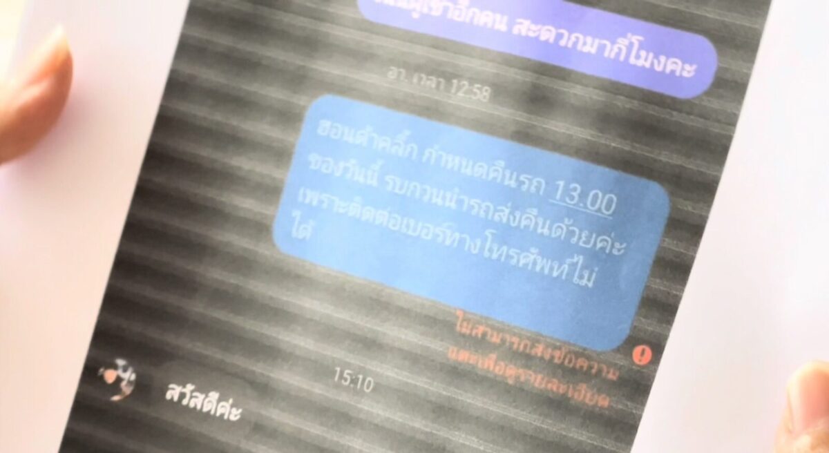 จนกระทั่งเมื่อถึงเวลากำหนดส่งคืนรถ ผู้เช่าทั้งสองคนนี้กลับขาดการติดต่อไปเลย และตนก็ไม่สามารถติดต่อไปได้ นอกจากนี้เมื่อทักไปยังช่องทางแชทที่สาวทอมคนนี้ติดต่อมาก็ไม่สามารถส่งได้ เพราะถูกบล็อค ตนได้นำเรื่องนี้โพสต์ลงโซเชี่ยล เพื่อติดตามเบาะแสของบุคคลทั้งสองคนนี้ ก็มีกลุ่มผู้ประกอบการรถเช่ารายอื่นๆ ติดต่อมาเยอะมาก พร้อมทั้งส่งภาพของบุคคลดังกล่าวมาให้ดูก็ปรากฎว่าเป็นคนเดียวกันที่มาติดต่อเช่ารถ และพบผู้ประกอบการรถเช่ารายหนึ่งก็ถูกก่อเหตุในลักษณะเช่นนี้ ซึ่งรถที่ให้เช่าเป็นรถยนต์ และไม่สามารถติดตามได้จนถึงตอนนี้ และนอกจากนี้เท่าที่ทราบมายังมีร้านเช่ารถอื่นๆ หลายรายที่โดนบุคคลดังกล่าวก่อเหตุในลักษณะเดียวกัน เท่าที่ทราบมีรถยนต์ 1-2 คัน และรถจักรยานยนต์ 4-5 คัน ที่ไม่รวมกับรถของตน