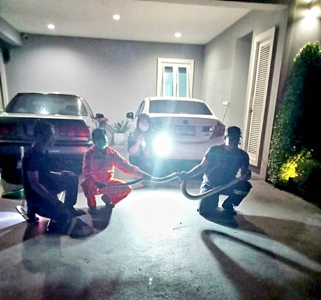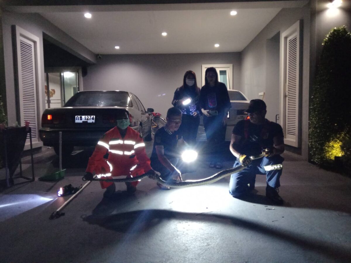 จากการสอบถามเจ้าของบ้านทราบว่าก่อนที่งูจะเข้าบ้านมีเสียงสุนัขเห่าคาดว่างูเหลือมจะมากินสุนัขเป็นอาหารเจ้าของบ้านมาพบก่อนจึงรีบแจ้งกู้ภัยมาจับก่อนที่งูเหลือมจะมาเขมือบสุนัข