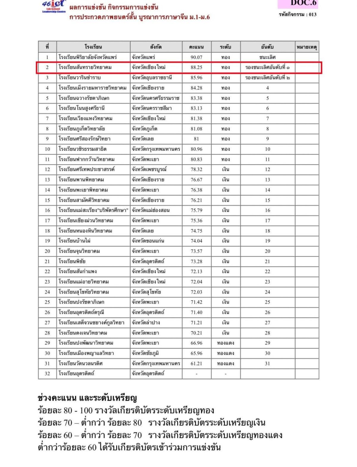 โรงเรียนสันทรายวิทยาคม ขอแสดงความยินดี กับนักเรียนระดับชั้นมัธยมศึกษาตอนต้น ได้รับรางวัลระดับทอง รองชนะเลิศอันดับที่ 2 การประกวดการนำเสนอนวัตกรรมและผลผลิตที่เกิดจากการเรียนรู้ในชั้นเรียน ม.1-3 ในการประกวดและแข่งขันทักษะวิชาการ ปี 2565 “นวัตกรรม เทคโนโลยี 46ICT พัฒนาสู่มาตรฐานสากล” ( 46ICT Innovative Technoligy to International Standards) วันที่ 28-30 สิงหาคม 2565 ณ โรงเรียนพะเยาพิทยาคม และ มหาวิทยาลัยพะเยา