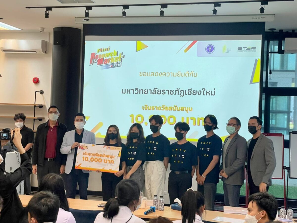ทั้งนี้ทีม CMRU R2M ได้รับคัดเลือกให้เป็นตัวแทนเข้าร่วมการแข่งขันในกิจกรรม Research to Market ระดับภูมิภาค พร้อมเงินรางวัลสนับสนุน 10,000 บาท ซึ่งจัดโดยอุทยานวิทยาศาสตร์และเทคโนโลยี มหาวิทยาลัยเชียงใหม่ ในฐานะแม่ข่ายอุทยานวิทยาศาสตร์ภาคเหนือ ภายใต้โครงการเส้นทางสู้นวัตวณิชย์ (Research to Market : Mini R2M) ประจำปีงบประมาณ 2565