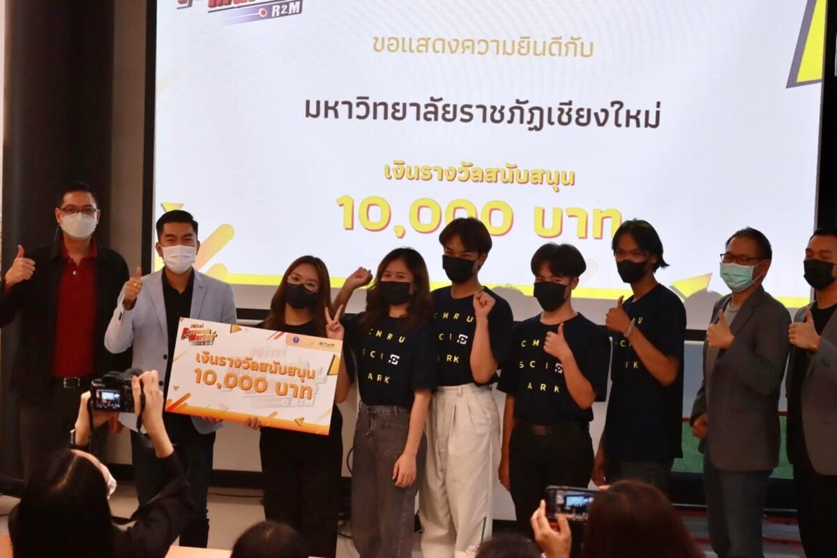 มหาวิทยาลัยราชภัฏเชียงใหม่ ขอแสดงความยินดีกับ ทีม CMRU R2M ได้แก่ น.ส.รวิสรา ลำสาร นักศึกษาคณะวิทยาการจัดการ น.ส.มลธิรา ปัดตานุ นายปิยะวัฒน์ หอยแก้ว นักศึกษาคณะวิทยาศาสตร์และเทคโนโลยี นายพีรดนย์ กองเงิน นายชาคริต ชนิดาพงศ์พันธ์ นักศึกษาคณะครุศาสตร์ น.ส.สกุลรัตน์ คำเจริญ ที่ปรึกษาทีม และ ผศ.ว่าที่ ร.ต.จินตนา อินภักดี อาจารย์ที่ปรึกษา โดยการสนับสนุนจากอุทยานวิทยาศาสตร์ภาคเหนือ มหาวิทยาลัยราชภัฏเชียงใหม่ ในการเข้าร่วมกิจกรรม “Mini R2M- Pitching” สำหรับนักศึกษา เมื่อวันที่ 30 สิงหาคม 2565 ณ The Brick x @NSP ชั้น 1 อาคาร C อาคารอำนวยการอุทยานวิทยาศาสตร์ภาคเหนือ (จังหวัดเชียงใหม่)