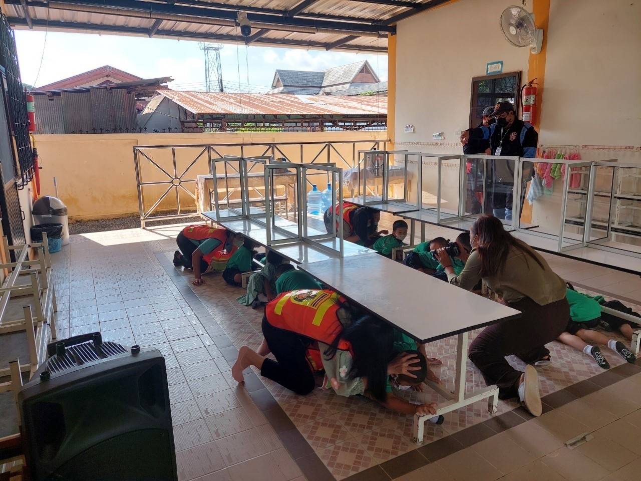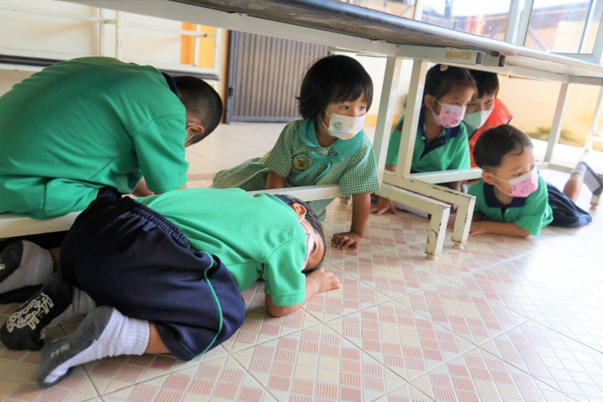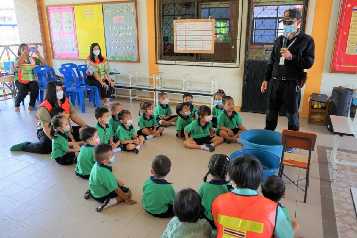 โดยได้จำลองเหตุการณ์ตัวอย่าง และให้เด็กนักเรียนและครูผู้ดูแลฝึกปฏิบัติ รวมถึงขั้นตอนการแจ้งและการรายงานสถานการณ์ตามลำดับ ทั้งนี้มีวัตถุประสงค์เพื่อลดความเสี่ยง และป้องกันการสูญเสียต่อชีวิตและทรัพย์สิน