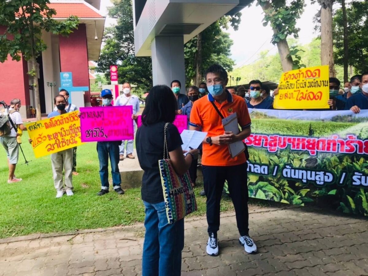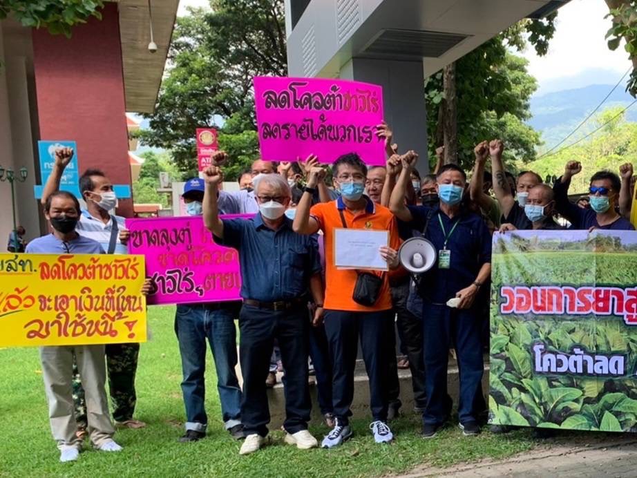กลุ่มสมาคมผู้บ่มผู้เพาะปลูก และผู้ค้าใบยาสูบจาก 6 จังหวัดภาคเหนือ กว่า 100 คน ชุมนุมยื่นหนังสือผ่านศูนย์ดำรงธรรมเชียงใหม่ ถึง รมต.คลัง วอนช่วยเหลือด่วน หลัง ยสท.กดราคารับซื้อใบยาสูบ ลงอีก 25 เปอร์เซ็นต์ ทำชาวไร่น้ำตาตก