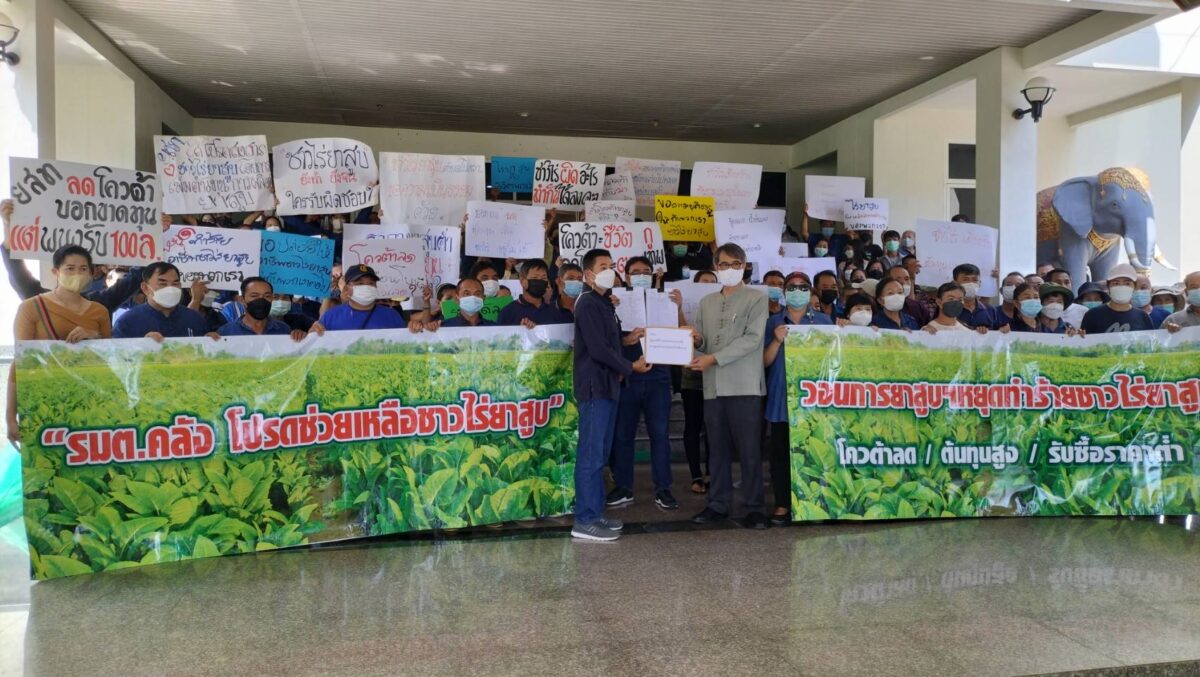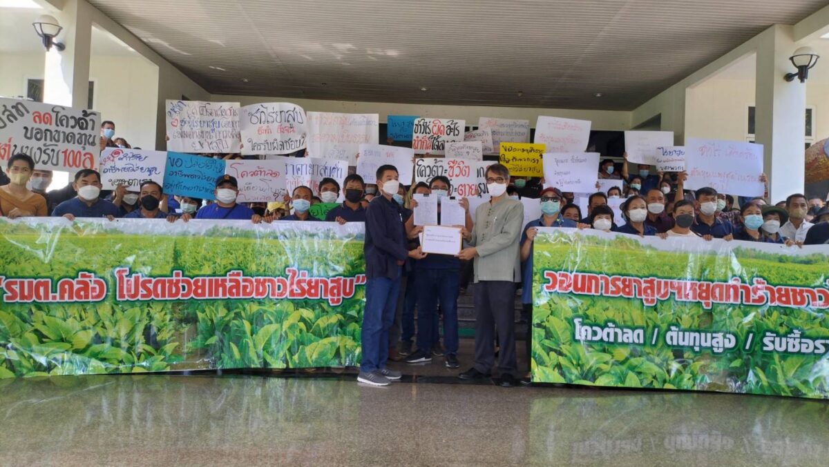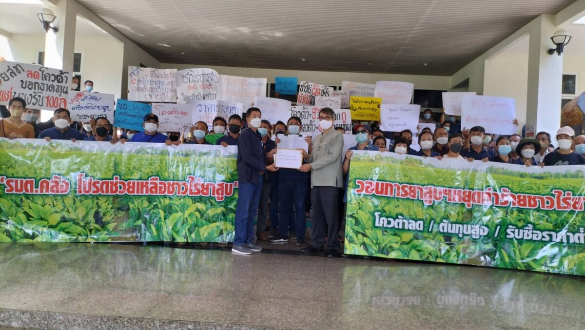 นายกิตติทัศน์ ผาทอง ตัวแทนสมาคมผู้บ่มผู้เพาะปลูกและผู้ค้าใบยาสูบ จ.เชียงราย นำชาวไร่กว่า 200 คน เข้ายื่นหนังสือถึงนายอาคม เติมพิทยาไพสิฐ รัฐมนตรีว่าการกระทรวงการคลัง ผ่านนายสมบูรณ์ กิจไพศาลเจริญ ผอ.ศูนย์ดำรงธรรม จ.เชียงราย เพื่อขอให้ช่วยเหลือจากปัญหาต้นทุนการผลิตใบยาสูบที่เพิ่มสูงขึ้น และการลดโควตารับซื้อใบยาพันธุ์เวอร์จิเนียสำหรับฤดูกาลผลิต 2565/66 ว่า