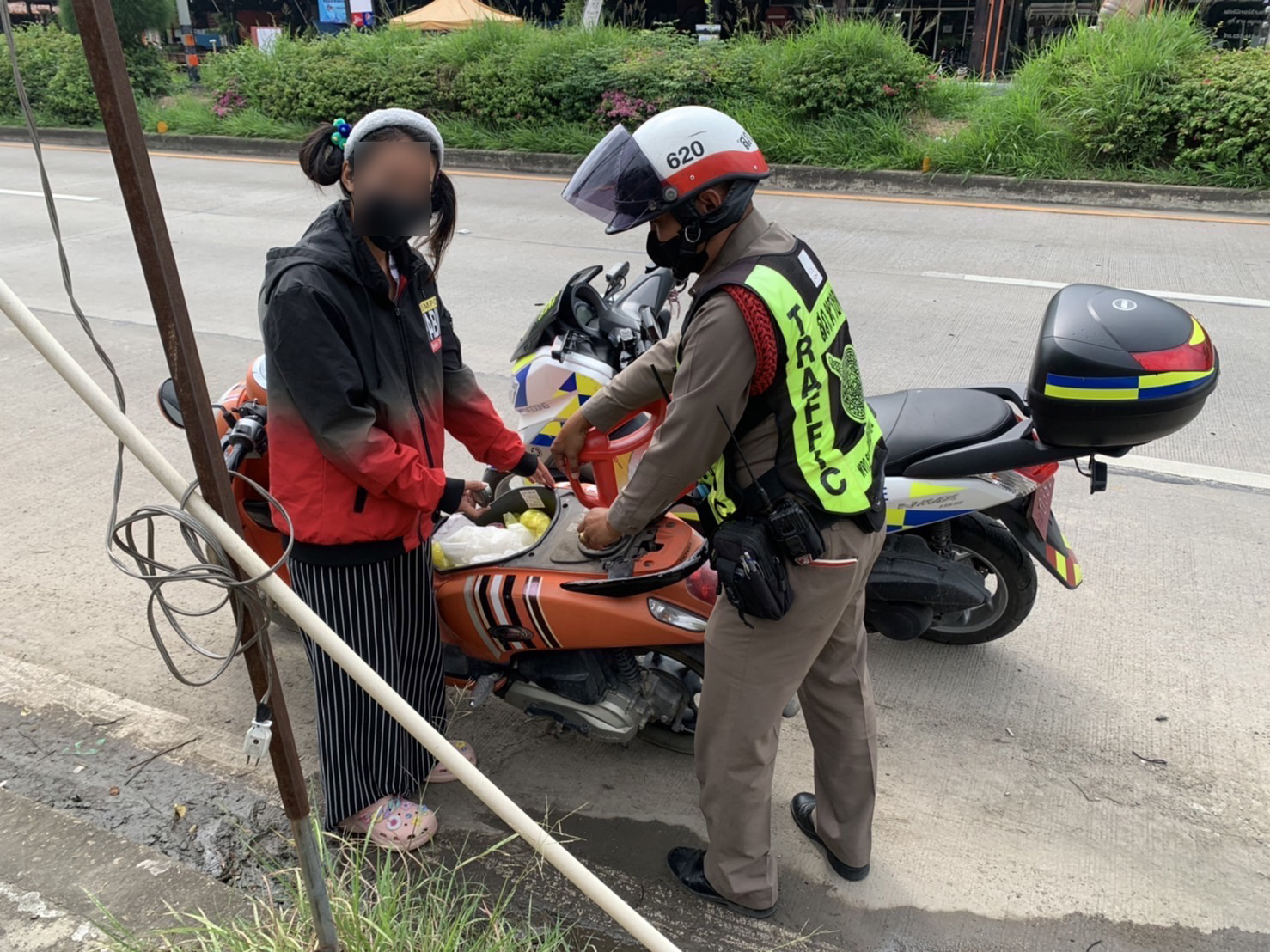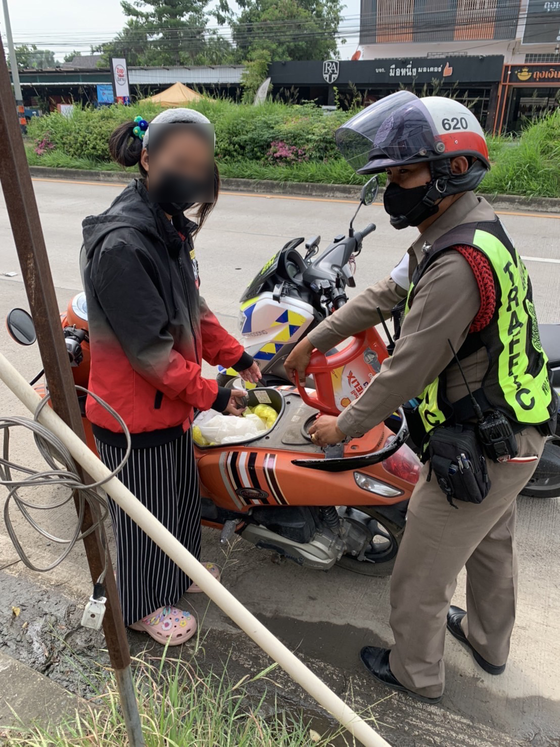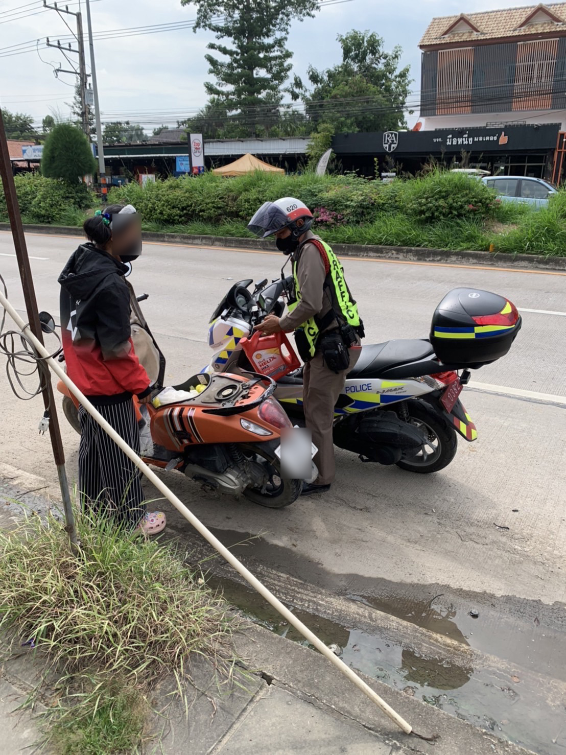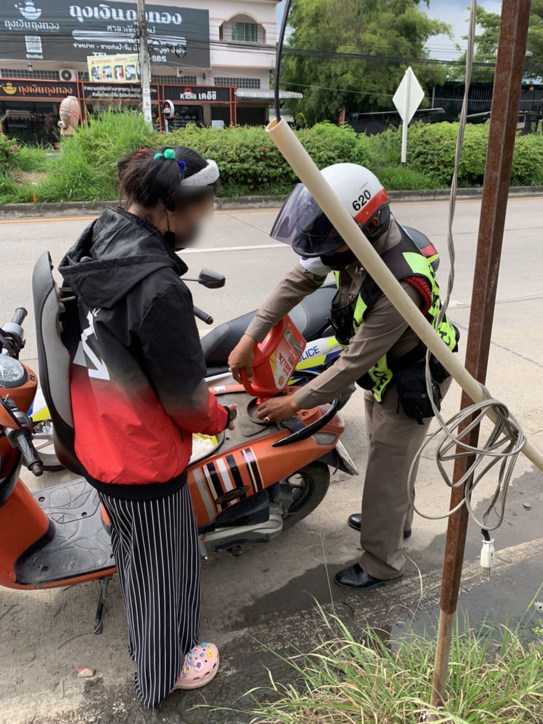 เมื่อเวลา 14.50 น. วันที่ 7 ก.ย. 2565 โดยการอำนวยการของ พ.ต.อ.คมสัน มีภักดี ผกก.สภ.หางดง จ.เชียงใหม่, พ.ต.ท.จักรินทร์ อัสดงพงพนา รอง ผกก.ป. พ.ต.ท.ศุภทัศน์ กิตติวรยศ สว.จร. โดย ด.ต.คณิตพัทธ์ คำสุนทร ผบ.หมู่.สส. (ปฎิบัติหน้าที่งานจราจร) ระหว่างออกปฎิบัติหน้าที่ อำนวยความสะดวกด้านการจราจรในพื้นที่ ได้ช่วยเหลือ น.ส.พัชรา (สงวนนามสกุล) บ้าน ม.4 ต.ออนกลาง อ.แม่ออน จ.เชียงใหม่ ซึ่งรถ จักรยานยนต์น้ำมันหมด โดยไปซื้อน้ำมันที่ปั๊มมาเติมให้จนสามารถเดินทางต่อไปได้