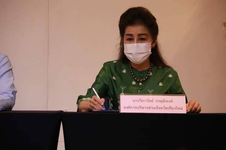 นางวิภาวัลย์ วรพุฒิพงค์ รองนายกองค์การบริหารส่วนจังหวัดเชียงใหม่ ร่วมลงนามบันทึกข้อตกลงความร่วมมือการขับเคลื่อนการสร้างสังคมแห่งการเรียนรู้เท่าทันสื่อในเด็ก เยาวชนและประชาชนของจังหวัดเชียงใหม่ “เชียงใหม่ เมืองรู้เท่าทันสื่อ” เพื่อแสดงเจตนารมณ์และความตั้งใจในการดำเนินการขับเคลื่อนให้เด็ก เยาวชน และประชาชน โดยมี นายวรญาณ บุญณราช รองผู้ว่าราชการจังหวัดเชียงใหม่ เป็นประธานในพิธี ณ โรงแรมวินทรี ซิตี้ รีสอร์ท