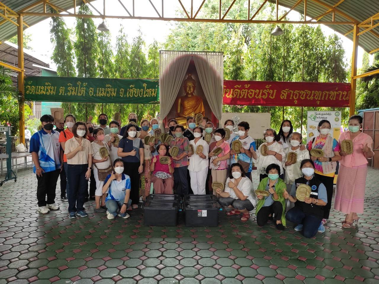 ที่วัดแม่ริม ต.ริมใต้ อ.แม่ริม จ.เชียงใหม่ สาขานวัตกรรมวัสดุ คณะวิทยาศาสตร์ มหาวิทยาลัยแม่โจ้ ร่วมกับฝ่ายปกครองบ้านหมู่ 1 ต.ริมใต้ นำโดยนายมนัส คำจันทร์ ผญบ.จัดสาธิตและฝึกอบรมโครงการเพิ่มมูลค่าจากขยะชุมชน โดยมีผู้ช่วยศาสตราจารย์ ดร.ปราณรวีร์ สุขันต์ ผู้ช่วยศาสตราจารย์ ดร.เรวดี วงศ์มณีรุ่ง และผู้ช่วยศาสตราจารย์ ดร.สุพัตรา วงศ์แสนใหม่ เป็นวิทยากร พร้อมนักศึกษา จัดสาธิตและฝึกอบรมรวม 2 ฐาน มีผู้เข้าร่วมกว่า 30 คน ฐานแรกเป็นการทำจานใบตองตึงและใบไม้ต่างๆ