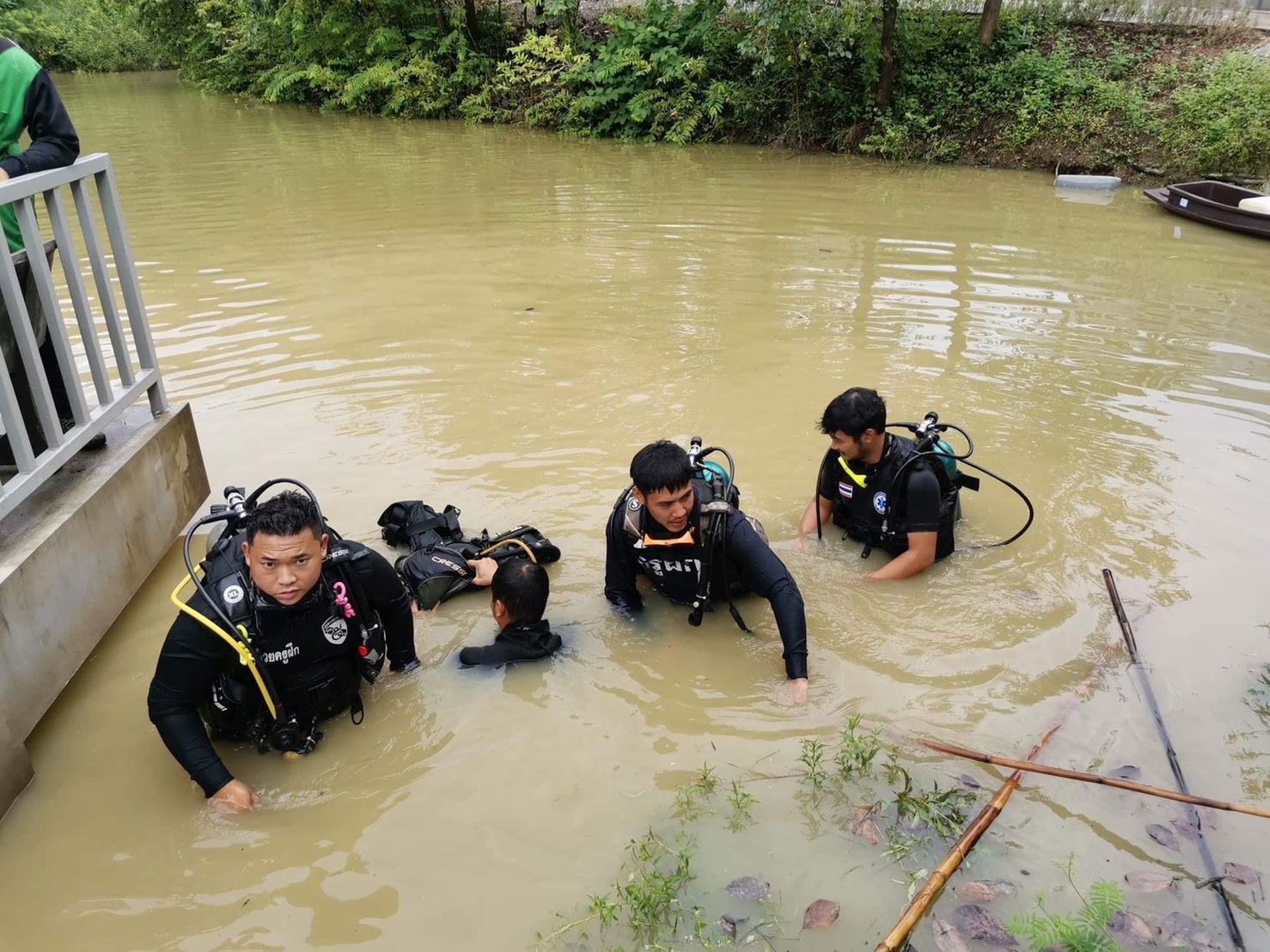 ทั้งนี้เบื่องต้นทราบว่าทั้งสองคน เป็นคนงานในสวนบ้านที่เกิดเหตุ และได้ชวนกันลงเรือพายเล่นในบ่อดิน ขณะพายเรือเล่นเพลินน้ำเกิดเข้าเรือเป็นเหตุให้เรือล่ม คนในสวนเข้าช่วยเหลือคนทั้งสองและช่วยหญิงสาววัย 19 ขึ้นมาบนฝั่งได้ ส่วนหญิงสาววัย 29 ปีได้จมน้ำหายไป และทางประดาน้ำฯได้งมหาร่าง จบกระทั่งพบว่าหญิงวัย 29 รายดังกล่าวที่จมน้ำ ได้เสียชีวิตอยู่ใต้น้ำดังกล่าว