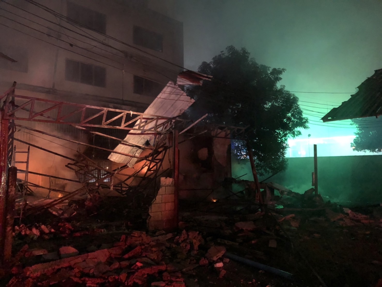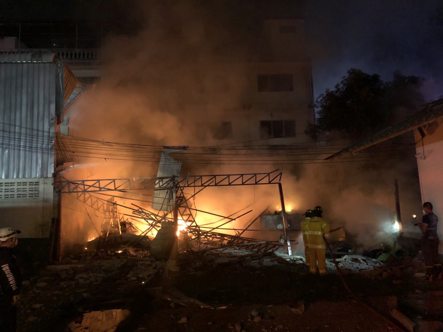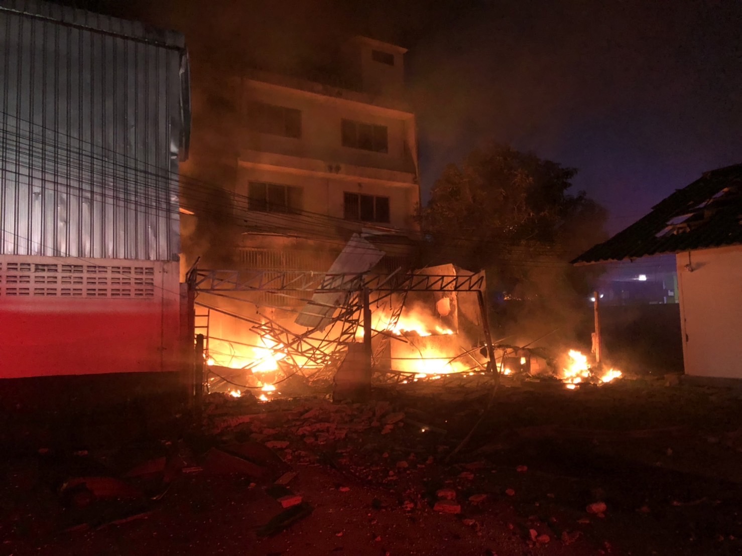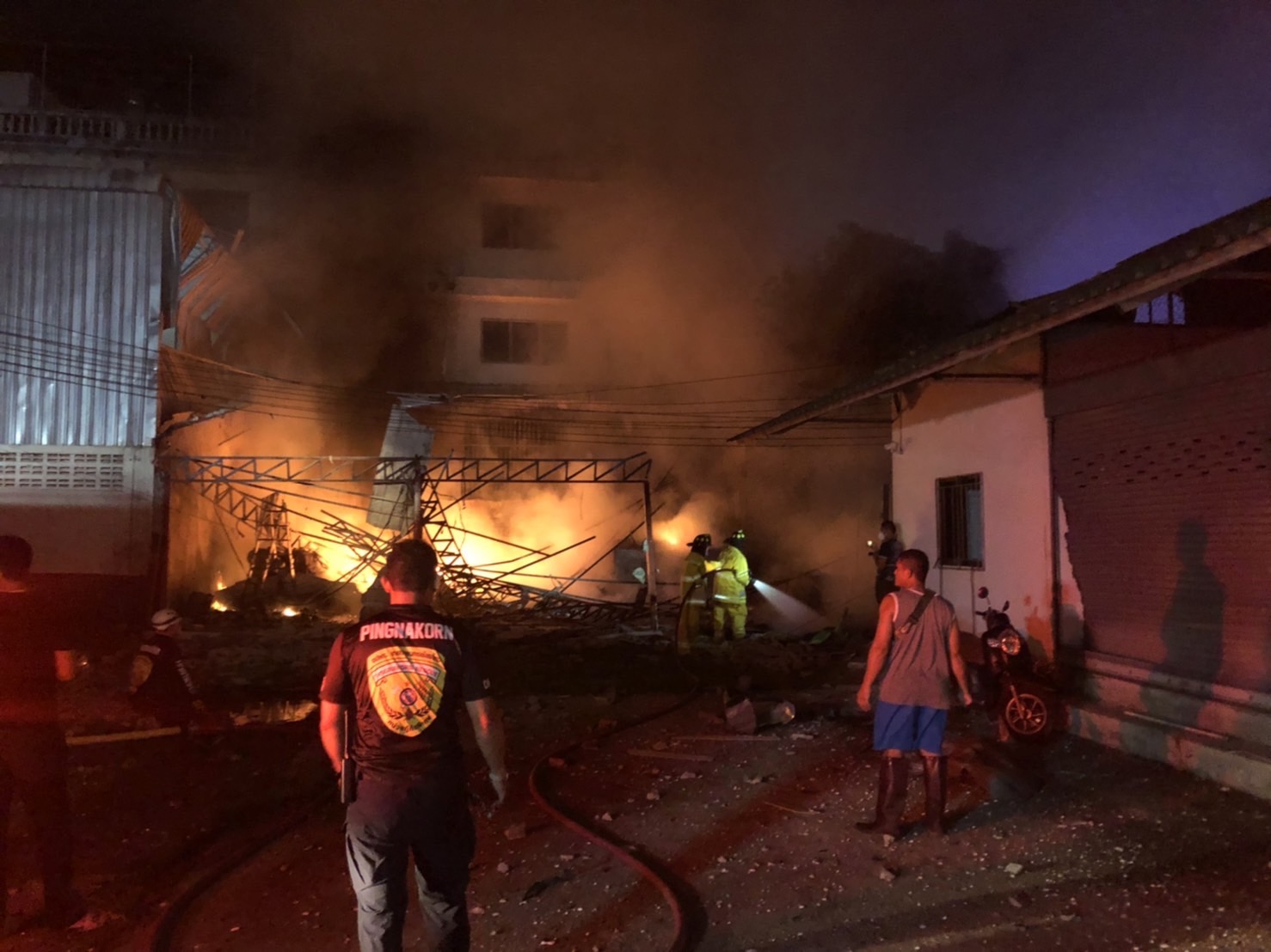 จากการตรวจสอบเบื้องต้นพบจุดเกิดเหตุเป็นที่เก็บสินค้า สารเคมีทางการเกษตร ได้เกิดระเบิดและเกิดเพลิงไหม้อาคาร ทางเจ้าหน้าที่ดับเพลิงได้เข้าควบคุมเพลิงไว้ได้แล้ว ในที่เกิดเหตุพบขวดบรรจุสารเร่งลำไย ตกกระจายเกลื่อน