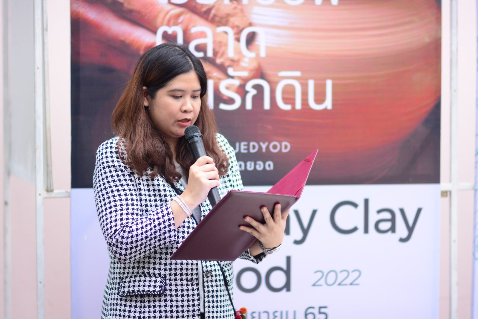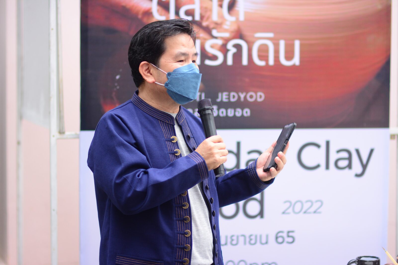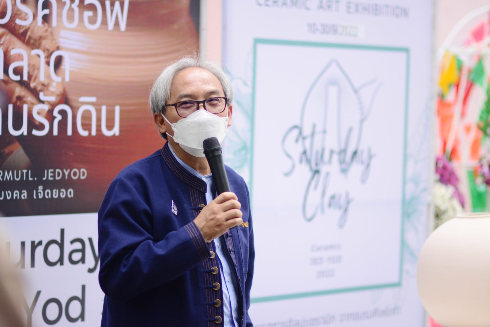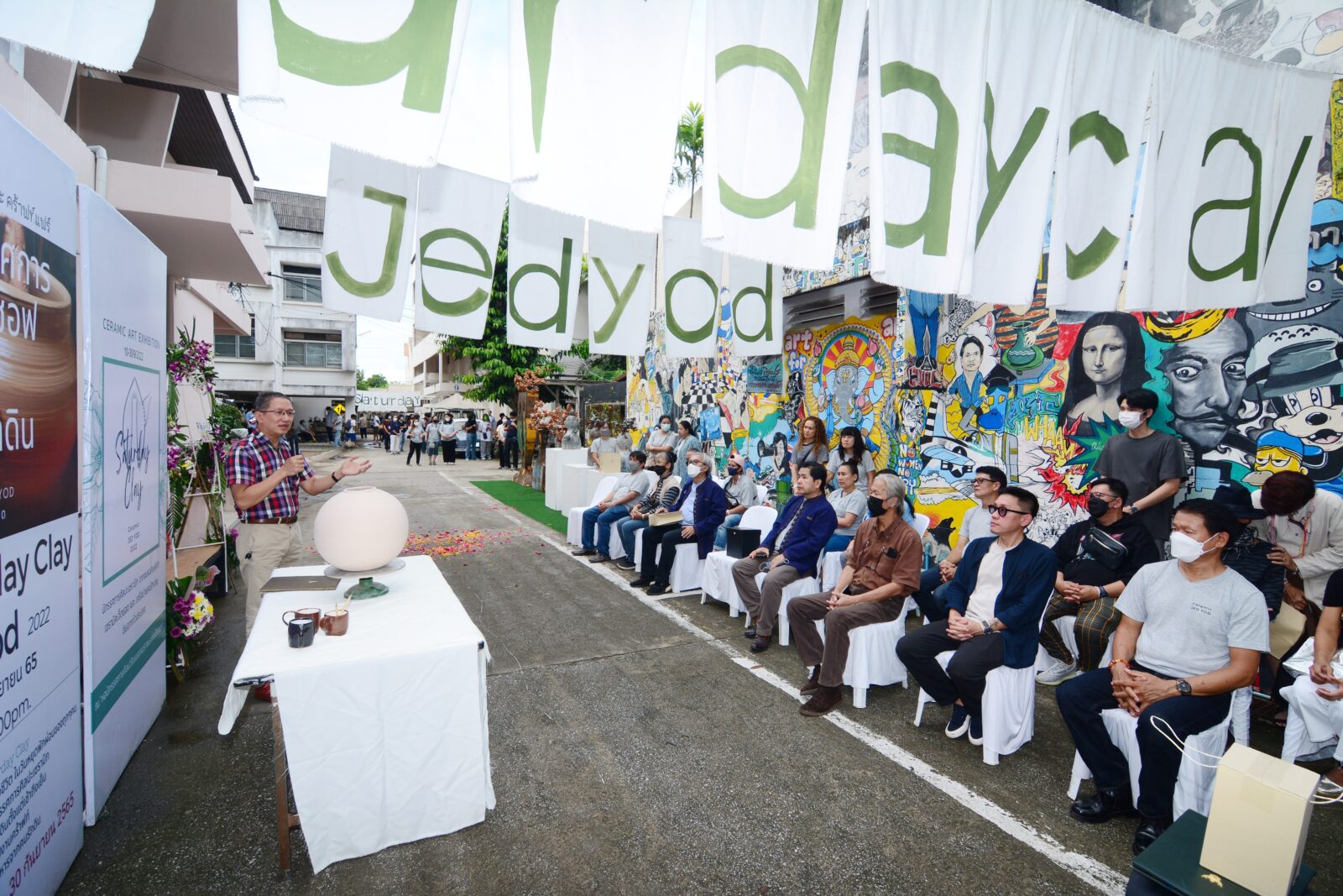 เวลา 16.45 น. ชมการแสดงเปิดงานในชุด “ฟ้อนขันดอก” โดย Khareena Tierney ลูกของศิษย์เก่า ปวริศา เทียร์นี่ , ผู้ช่วยศาสตราจารย์ ดร. พีระ จูน้อยสุวรรณ คณบดีคณะศิลปกรรมและสถาปัตยกรรมศาสตร์ มหาวิทยาลัยราชเทคโนโลยีมงคลล้านนา กล่าวต้อนรับแขกผู้ร่วมงาน ,รองศาสตราจารย์ ไพบูลย์ หล้าสมศรี รองคณบดีฝ่ายวิจัยและบริหารวิชาการ กล่าวภาพรวมการจัดโครงการ ,นายอรรถเทพ สมัครธัญกิจ ผู้จัดการอารมณ์ดินเซรามิก ประธานการจัดงาน กล่าวรายงานการจัดงาน Saturday Clay Jedyod มีวัตถุประสงค์เพื่อส่งเสริมและพัฒนาศักยภาพในการจัดการเรียนการสอนด้านเซรามิก ด้วยทักษะใหม่ทั้ง reskill, Upskill และNewskill สามารถบูรณาการกับเทคโนโลยี นวัตกรรม งานสร้างสรรค์ และภูมิปัญญา, ดร.นพวรรณ เดชบุญ หัวหน้าหลักสูตรเทคโนโลยีเซรามิกส์ กล่าวประวัติความเป็นมา ,นายภูริดล พิมสาร Have A Hug Fusion Farm กล่าวที่มาของงาน ได้รับเกียรติจาก ผู้ช่วยศาสตราจารย์ สมเกียรติ วงษ์พานิช รองอธิการบดีฝ่ายบริหาร กล่าวเปิดงาน พิธีเปิดเป็นการวาดลวดลายบนบีสกิต คณาจารย์และแขกผู้ร่วมงานร่วมวาด ประธานในพิธีนำแขกผู้ร่วมชมผลงาน กิจกรรมตลาดนัดคนรักดิน จำนวน 20 ร้านค้า ณ หอศิลปกรรมและสถาปัตยกรรมศาสตร์ มหาวิทยาลัยเทคโนโลยีราชมงคลล้านนา(เจ็ดยอด) เชียงใหม่