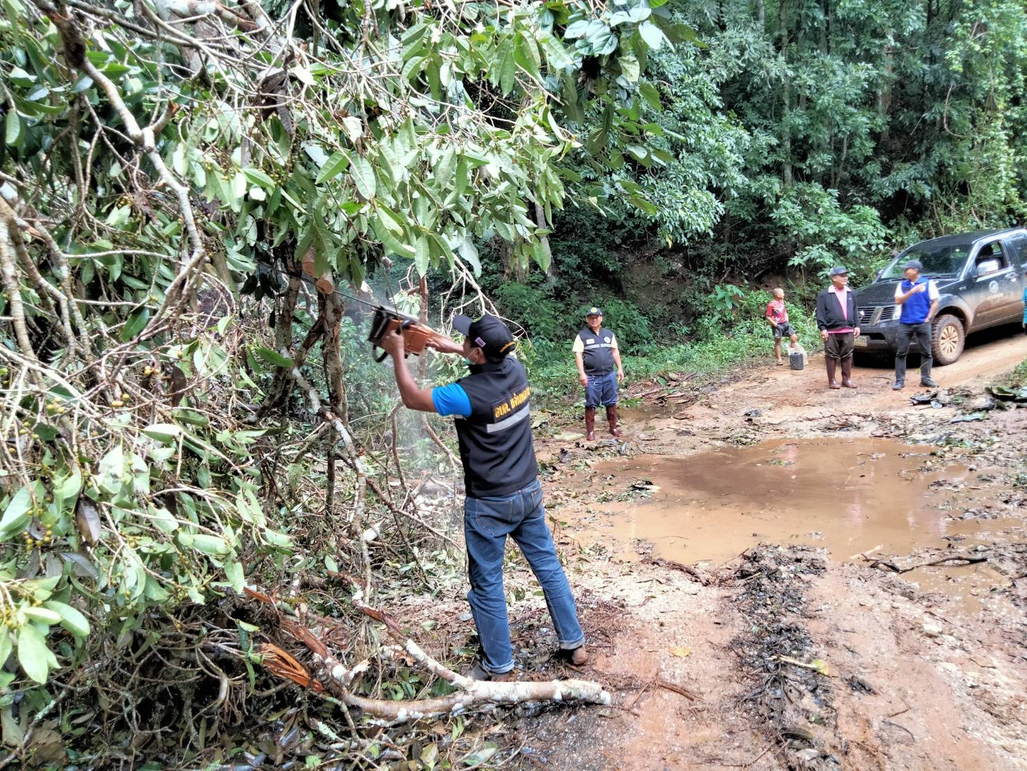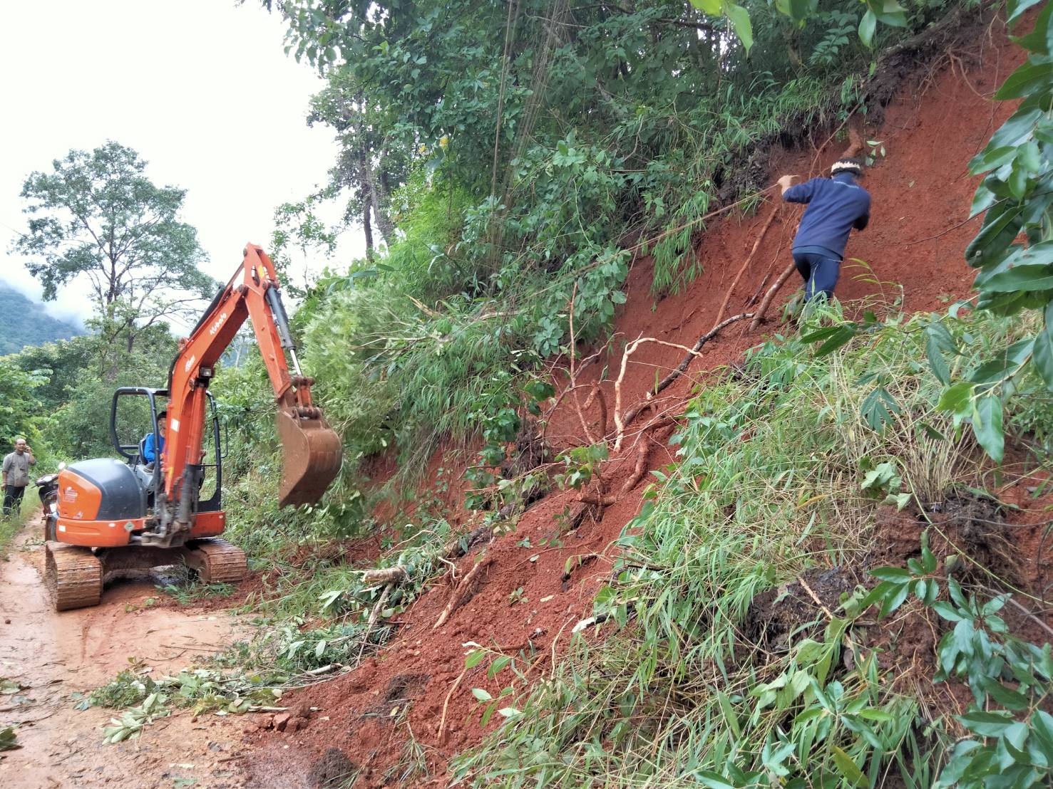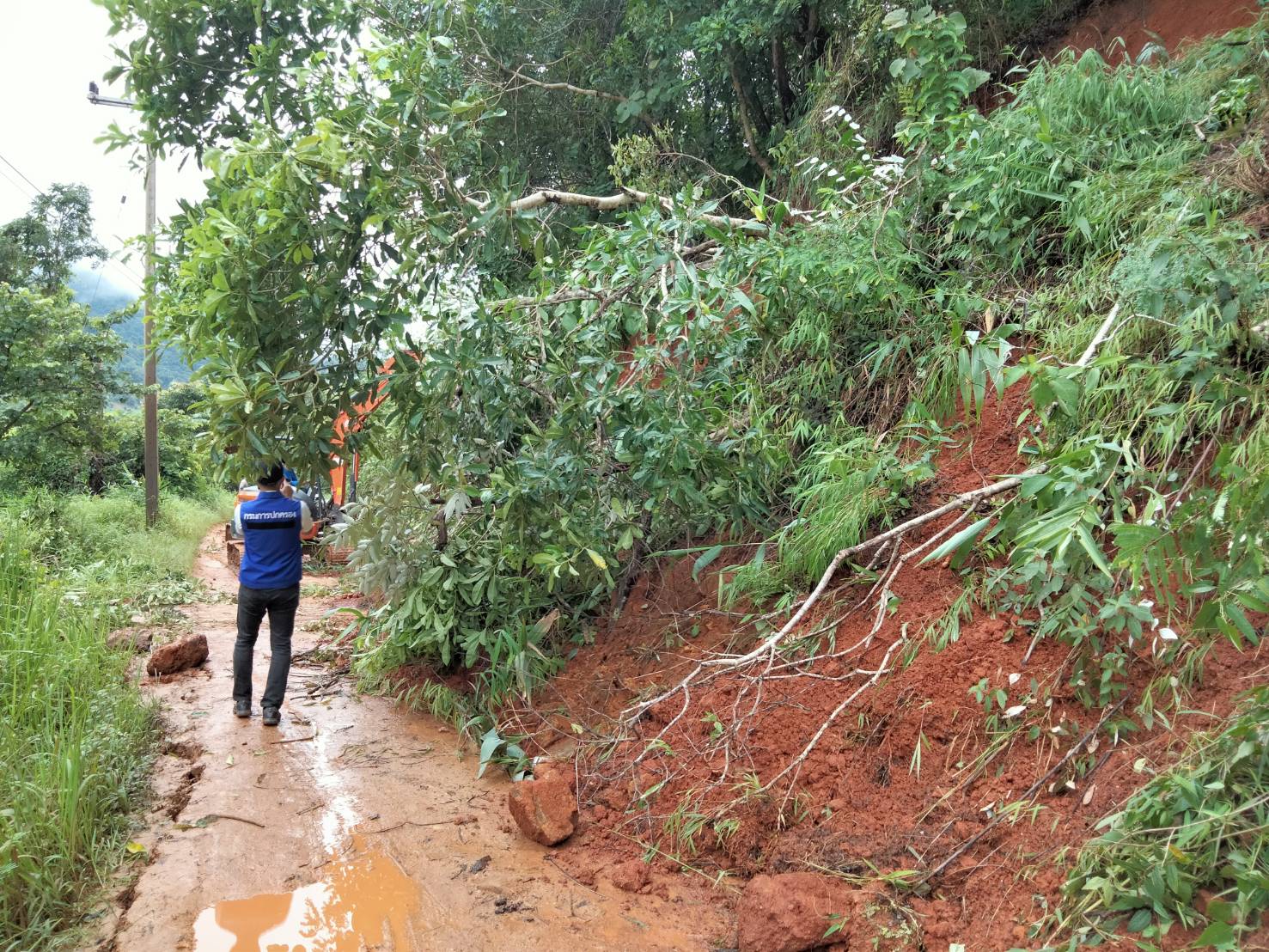 วันนี้ 12 กันยายน 2565 เวลา 09.00 น. ทาง นายวรศักดิ์ พานทอง นายอำเภอกัลยาณิวัฒนา จ.เชียงใหม่ ได้ลงพื้นที่ร่วมกับ นายสว่างชัย ศิลป์มิตรภาพ นายกองค์การบริหารส่วนตำบลแจ่มหลวง พร้อมด้วย รองนายกองค์การบริหารส่วนตำบลแจ่มหลวง และ ผู้ใหญ่บ้าน หมู่ที่ 1 ต.แจ่มหลวง อ.กัลยาณิวัฒนา ตรวจสอบเส้นทางระหว่าง สาย หมู่ที่ 7 บ้านเสาแดง-หมู่ที่ 1 บ้านขุนแม่รวม ที่ได้รับความเสียหายจากดินสไลด์ ปิดเส้นทางเข้า-ออก หมู่บ้าน ทำใหญ่ราษฎรในพื้นที่ บ้านขุนแม่รวม ไม่สามารถใช้ รถจักรยานยนต์/รถยนต์สัญจร ไป-มา สาเหตุเนื่องจาก ตลอดช่วง 2-3วันที่ผ่านมามีฝนตกอย่างต่อเนื่อง และช่วงคืนที่ผ่านมา ได้เกิดดินสไลด์ปิดเส้นทางหลายแห่ง รวมถึงสไลด์ทับเสาไฟฟ้าล้มทับต้นไม้ ทำให้ไฟฟ้าดับตลอดทั้งคืนที่ผ่าน ทำให้นักเรียนในหมู่บ้าน ซึ่งอยู่ในช่วงระหว่างสอบ ไม่สามารถขาดเรียนได้ ต้องเดินเท้าไปเรียนในหมู่บ้านใกล้เคียง สำหรับการให้ความช่วยเหลือ อบต.แจ่มหลวง ได้นำเจ้าหน้าที่ตัดต้นไม้ที่ล้มปิดเส้นทาง และนำรถแม็คโครขนาดเล็ก จำนวน 2 คัน เปิดเส้นทางเพื่อให้ราษฎรในพื้นที่ สัญจรไปมาได้
