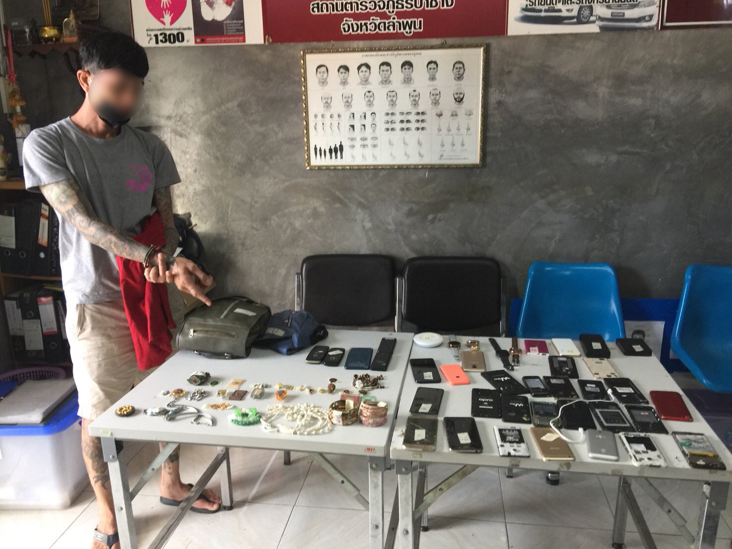 ทั้งนี้ก่อนการจับกุม เจ้าหน้าที่ตำรวจทั้งจังหวัดเชียงใหม่และจังหวัดลำพูน ได้รับแจ้งจากผู้เสียหายว่ามีขโมยเข้าบ้านทำการงัดแงะเอาทรัพย์สินไปในเวลากลางคืน ซึ่งทางเจ้าหน้าที่ตำรวจตามแกะรอยจากกล้องวงจรปิด จนกระทั่งทราบว่าผู้ต้องหากำลังเข้าพื้นที่ สภ.เหมืองจี้ จ.ลำพูน ชุดสืบสวน สภ.เหมืองจี้ จึงได้ติดตาม จนกระทั่งสามารถจับกุมตัวได้เสียก่อน จึงนำตัวมาทำการสอบสวนและส่งมอบให้ตำรวจ สภ.ป่าซางเพื่อสืบสวน เนื่องจากก่อเหตุนับครั้งไม่ถ้วนทั้ง 2 จังหวัด เชียงใหม่และลำพูน