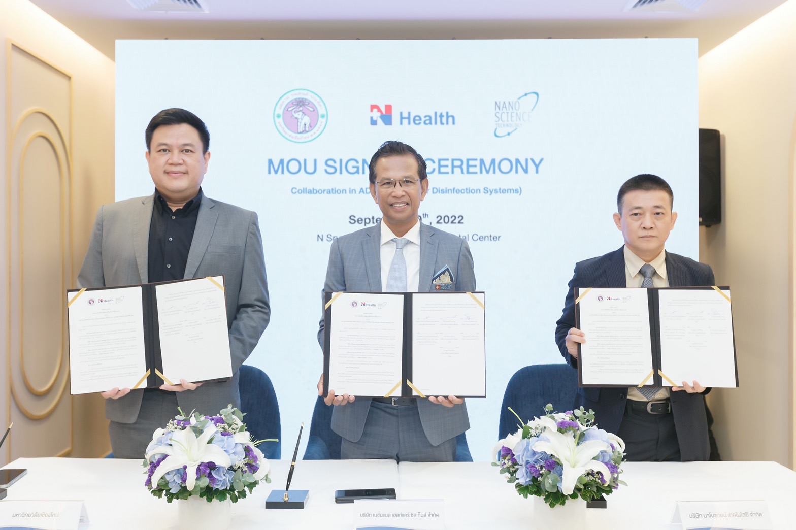 พิธีลงนามความร่วมมือการพัฒนาเครื่องทำลายเชื้อในอากาศ ระหว่างมหาวิทยาลัยเชียงใหม่ และ N Health เครือโรงพยาบาลกรุงเทพ พร้อมบริษัท นาโนซายน์ เทคโนโลยี มีขึ้นเมื่อวันที่ 9 กันยายน 2565 โดยรองอธิการบดีมหาวิทยาลัยเชียงใหม่ ผศ.ดร. ธัญญานุภาพ อานันทนะ รับมอบหมายจากอธิการบดี ศ.ดร.นพ.พงษ์รักษ์ ศรีบัณฑิตมงคล รวมถึงคุณณรงค์ฤทธิ์ กาละพุฒ ประธานคณะผู้บริหารธุรกิจสนับสนุนโรงพยาบาล 7.1 บริษัท กรุงเทพดุสิตเวชาการ จำกัด (BDMS) และคุณวิโรจน์ โขมพัตราภรณ์ ประธานกรรมการบริษัท นาโนซายน์ เทคโนโลยี จำกัด เป็นผู้ลงนาม ณ ศูนย์บริการตรวจวิเคราะห์สุขภาพ (N space)