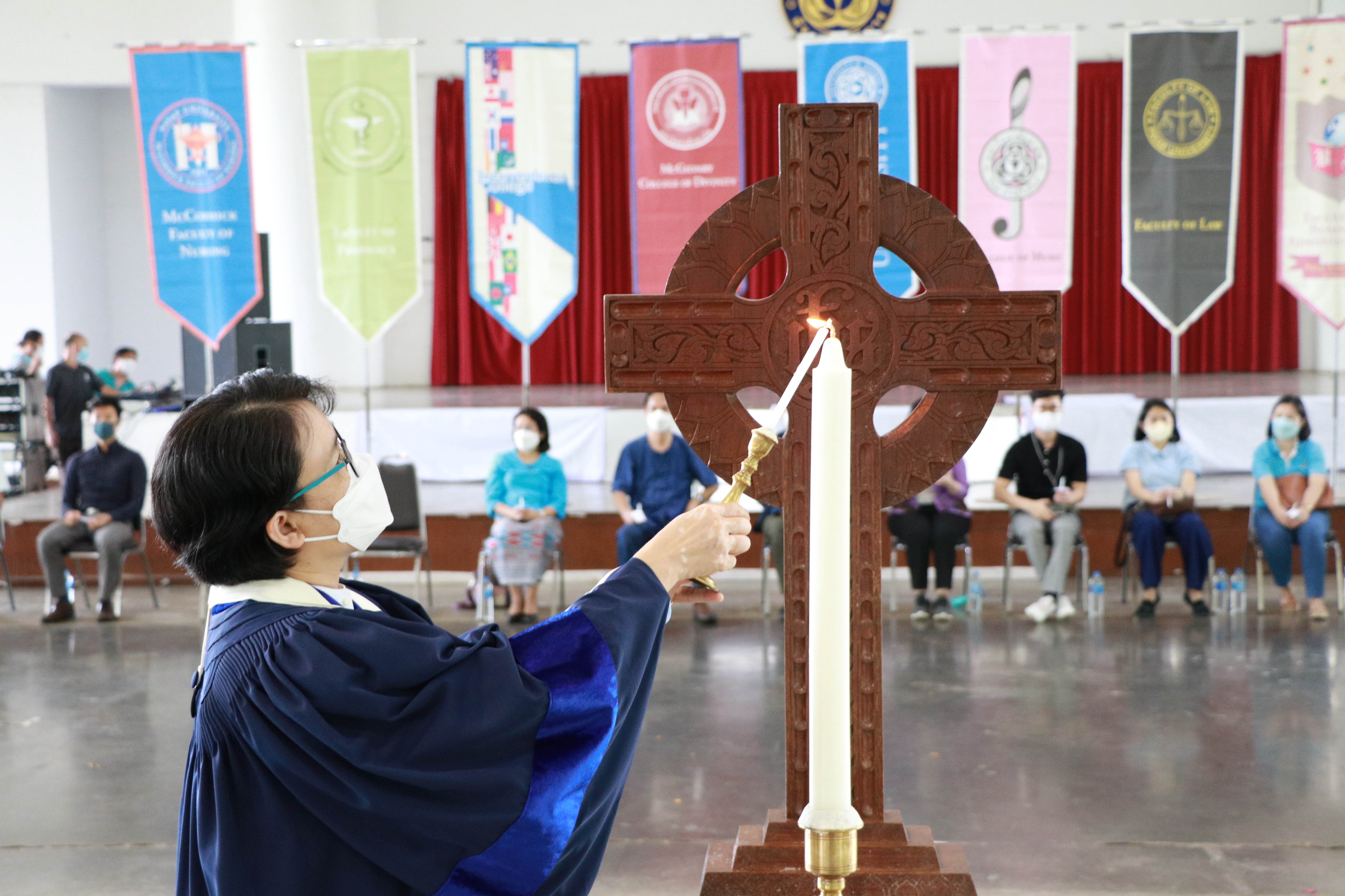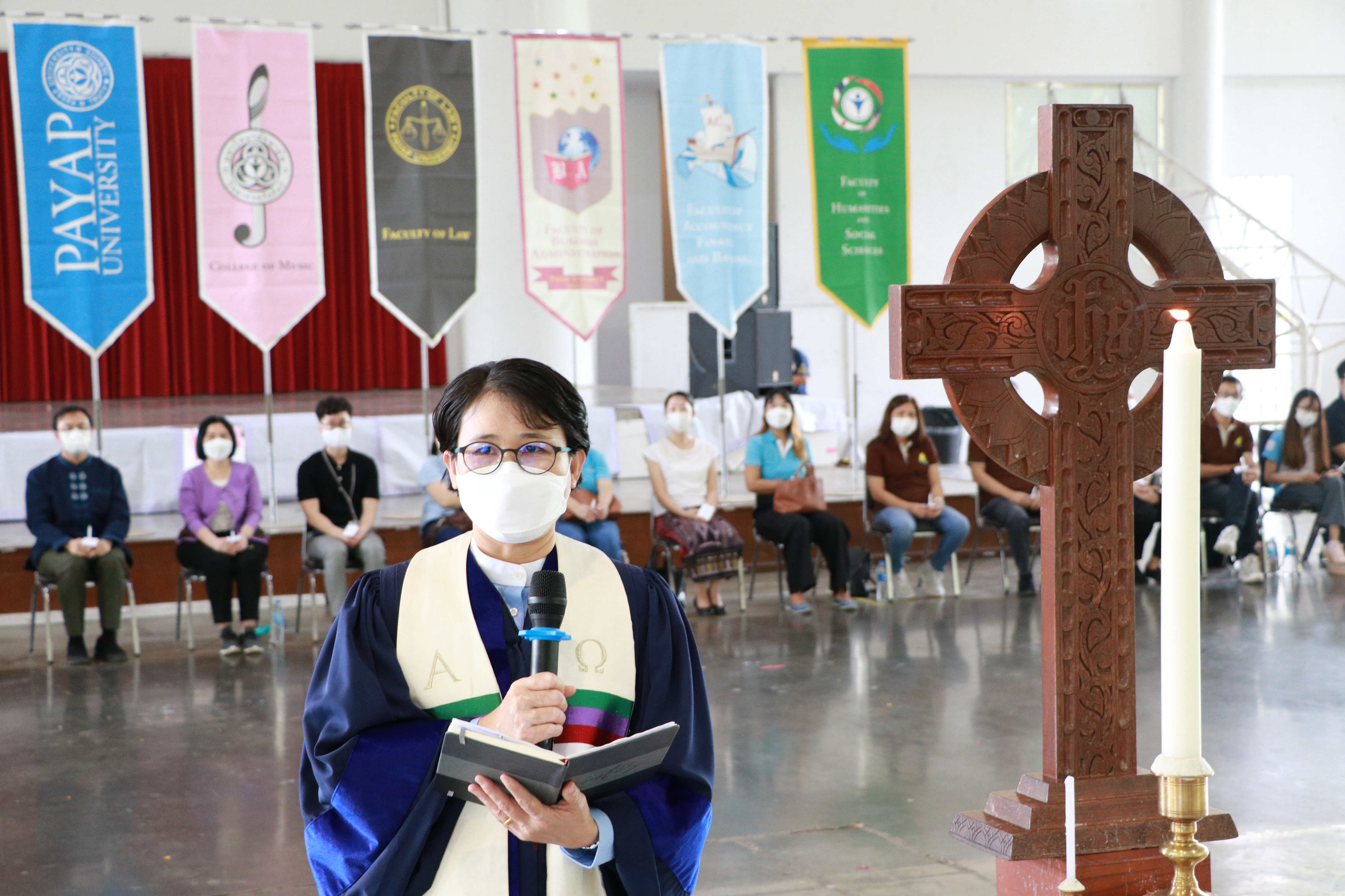 ในพิธีจะมีการจุดเทียนเล่มใหญ่ ซึ่งเล็งถึง พระเยซูคริสต์ พระเจ้าผู้ทรงเป็นความสว่างของโลก พระเจ้าที่เสด็จมาในโลกนี้ เพื่อสำแดงความรัก ความเมตตาของพระองค์ให้กับมนุษย์ทุกคน พระเยซูคริสต์ตรัสว่า “เราเป็นความสว่างของโลกผู้ที่เดินตามเรามาจะไม่เดินในความมืด แต่จะมีความสว่างแห่งชีวิต” หมายถึง ปัญญา การพบสัจจะอย่างแท้จริง ดังนั้นเมื่อนักศึกษาเข้ามาอยู่ในมหาวิทยาลัยพายัพ จะมั่นใจว่าเราเป็นคนที่พระเจ้าสร้างขึ้นมา เป็นผู้ที่มีความสามารถ เป็นผู้ที่มีคุณค่า มีความหมายและเราจะดำเนินชีวิตในทางที่ถูกต้องและดีงาม