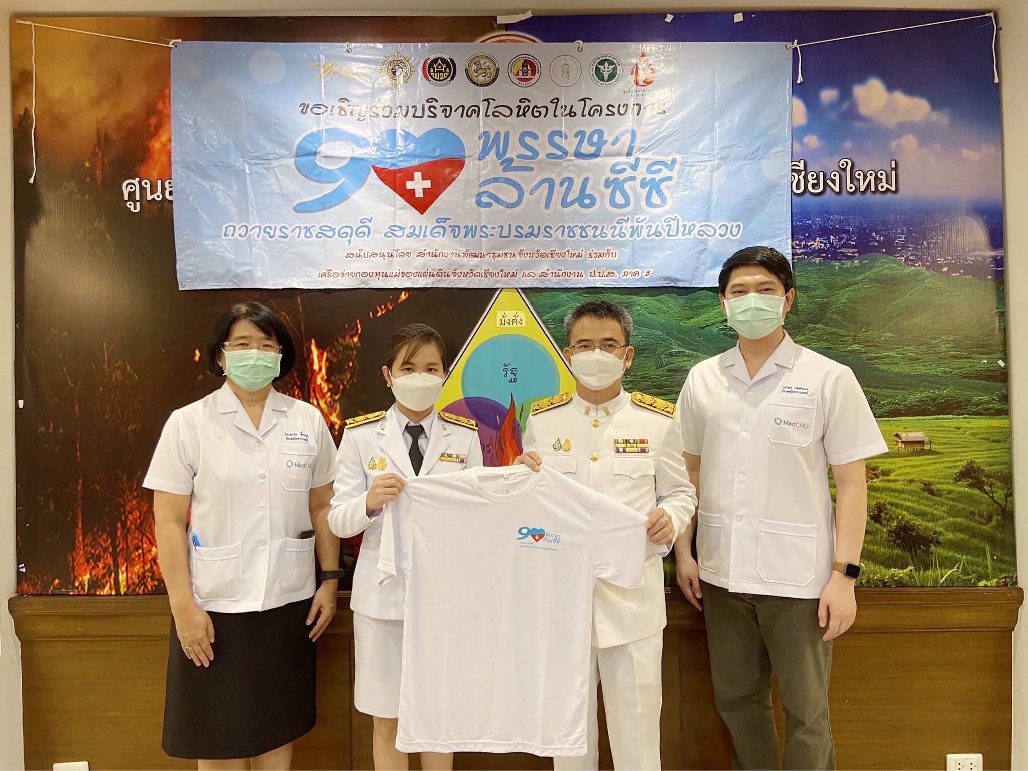 ทนพญ. นิภาพรรณ ลี้ตระกูล หัวหน้างานธนาคารเลือด และ ทนพ. บรรพต แสงคำนาง หัวหน้าหน่วยจัดหาและตรวจความปลอดภัยของโลหิต งานธนาคารเลือด โรงพยาบาลมหาราชนครเชียงใหม่ พร้อมคณะ ร่วมกับสำนักงานพัฒนาชุมชนจังหวัดเชียงใหม่ จัดกิจกรรม “บริจาคโลหิต “90 พรรษา 90 ล้านซีซี. ถวายราชสดุดี สมเด็จพระบรมราชชนนีพันปีหลวง” ในพิธีมอบเงินพระราชทานขวัญถุง กองทุนแม่ของแผ่นดิน ประจำปี 2565 และกิจกรรมงานกองทุนแม่ของแผ่นดิน จังหวัดเชียงใหม่ ประจำปี 2565 โดยมี คุณศักดิ์ชัย คุณานุวัฒน์ชัยเดช รองผู้ว่าราชการจังหวัดเชียงใหม่ เป็นประธานในพิธี พร้อมด้วย คุณเจริญ สีวาโย พัฒนาการจังหวัดเชียงใหม่ นำข้าราชการ นักเรียน นักศึกษา และประชาชน ร่วมบริจาคโลหิตจำนวน 50 ราย ได้โลหิตทั้งสิ้น 10,800 ซีซี เมื่อวันที่ 16 กันยายน 2565 ณ หอประชุมเฉลิมพระเกียรติ 80 พรรษา องค์การบริหารส่วนจังหวัดเชียงใหม่