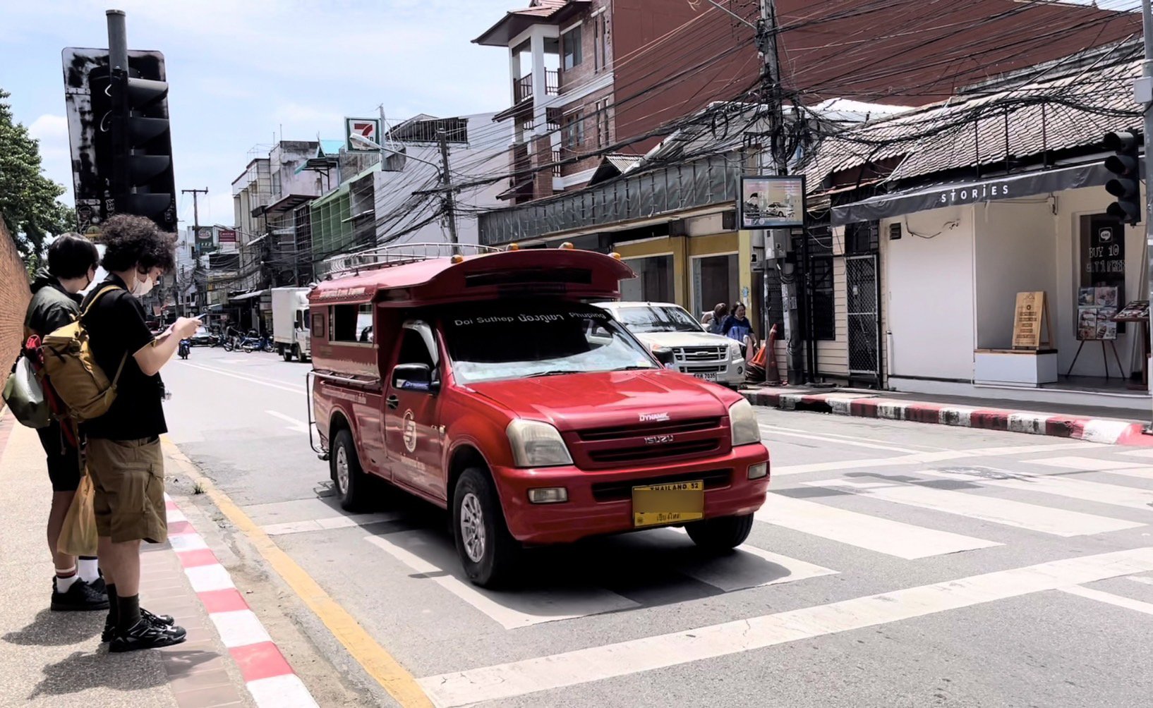 ขณะที่ทางด้านโชเฟอร์อีกราย บอกว่า แม้ว่าตอนนี้บรรยากาศการท่องเที่ยวของเชียงใหม่จะกลับมาดีขึ้นกว่าช่วงก่อนหน้านี้ แต่ในส่วนของการให้บริการรถสี่ล้อแดง ก็ยังไม่คึกคักเท่าที่ควร เพราะส่วนใหญ่ สมัยนี้นักท่องเที่ยวและคนเดินทางมีช่องทางในการเลือกใช้บริการรถสาธารณะเพิ่มขึ้น ทั้งรถตู้ รถทัวร์ แกร็บ รวมทั้งที่เช่ารถเดินทางเอง รถแดงจึงมีคนใช้บริการน้อยลง แต่เมื่อเทียบกันกับช่วงที่เกิดโรคระบาด สถานการณ์ก็ยังดีขึ้นมาบ้าง จากที่แทบไม่มีผู้โดยสาร แต่ตอนนี้ก็พอมีบางวันละ 5-6 ราย และพอมีรายได้เลี้ยงปากเลี้ยงท้อง ส่วนการที่ผู้โดยสารจะเลือกใช้บริการหรือไม่นั้น ก็แล้วแต่ความพึงพอใจส่วนตัวของลูกค้า