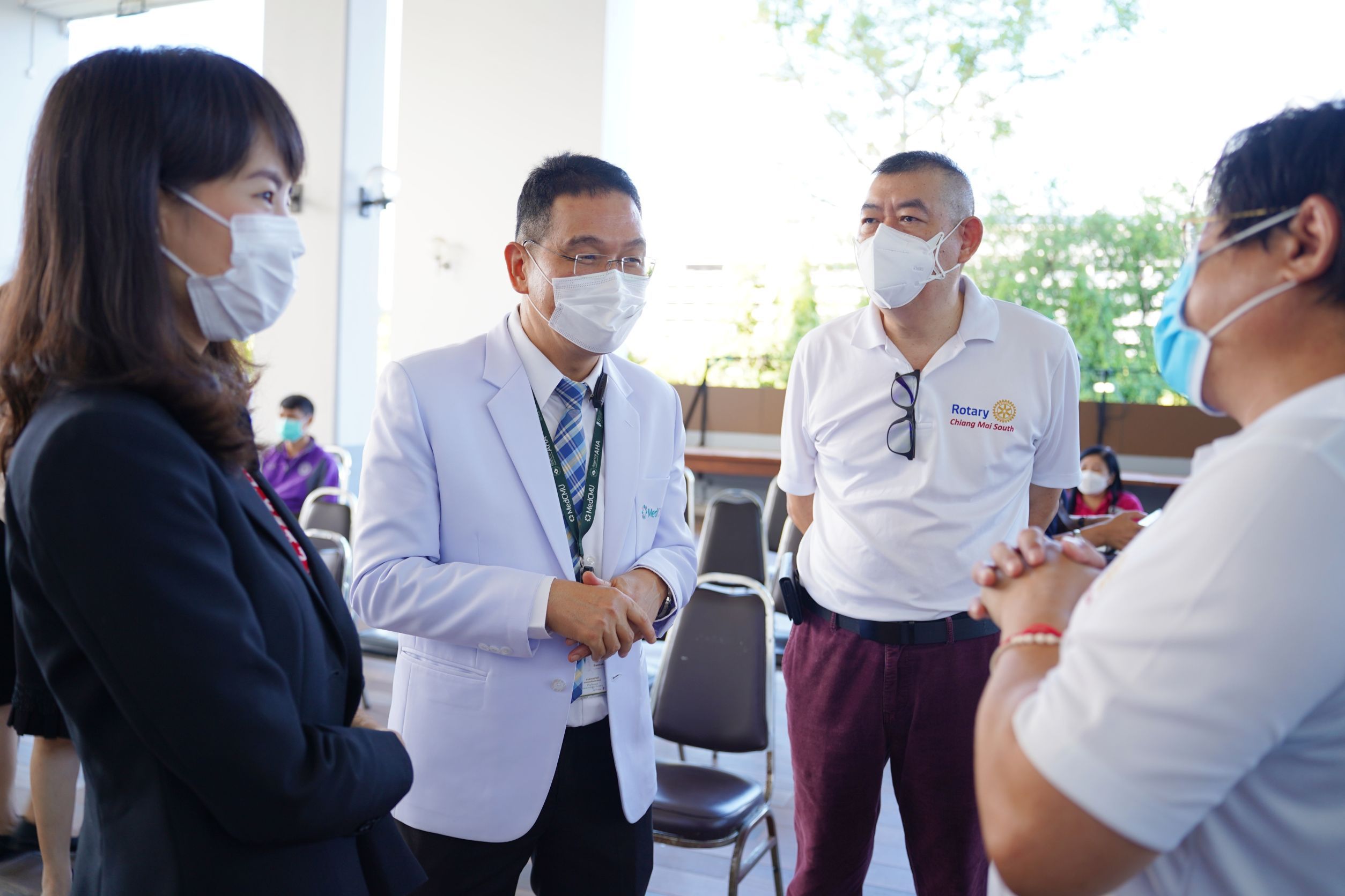 ศ.(เชี่ยวชาญพิเศษ) นพ.บรรณกิจ โลจนาภิวัฒน์ คณบดีคณะแพทยศาสตร์ มช. ร่วมให้กำลังใจคณะทำงาน และเยาวชนจิตอาสา ที่ร่วมดำเนินการแจกแว่นตา แก่ผู้สูงอายุ ในกิจกรรมเยาวชนจิตอาสาเแบ่งปันความสุข โครงการแว่นสายตาเพื่อชุมชนและผู้สุงอายุ จัดโดยสโมสรโรตารีเชียงใหม่ใต้ร่วมกับโรตารีภาค 3360 สำนักงานสาธารณสุขจังหวัดเชียงใหม่ คณะแพทยศาสตร์ มช. และมูลนิธิชาวดอยร่วมรู้รักสามัคคีเพื่อชีวิต โดยมีคุณทิพย์วิมล กองสี นายกสโมสรโรตารีเชียงใหม่ใต้ ร่วมในกิจกรรม นำเยาวชนจิตอาสา ร่วมรับลงทะเบียน แจกบัตรคิว ตรวจวัดสายตา การเข้ารับและทดสอบแว่นตา เพื่อให้เยาวชนจิตอาสาได้มีส่วนร่วมในการทำกิจกรรม รู้จักการแบ่งปัน มีจิตสาธารณะและสร้างมนุษยสัมพันธ์กับบุคคลภายนอก เมื่อวันที่ 27 กันยายน 2565 ณ ชั้น 2 อาคารเรียนรวมคณะแพทยศาสตร์ มหาวิทยาลัยเชียงใหม่