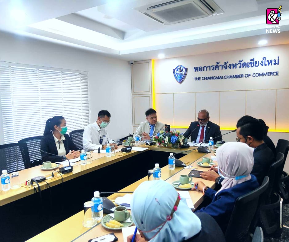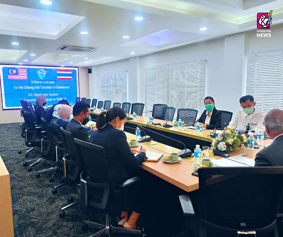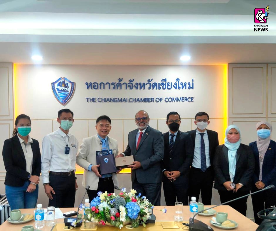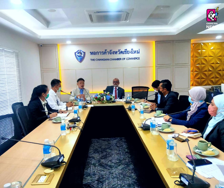 วันที่ 26 กันยายน 2565 นายสมฤทธิ์ ไหคำ รองประธานกรรมการหอการค้าจังหวัดเชียงใหม่ เป็นผู้แทนในนามประธานกรรมการหอการค้าฯ พร้อมด้วย รองประธานกรรมการ YEC หอการค้าจังหวัดเชียงใหม่ (นายฐกฤต กระแสสุข และ นางสาวพิลาสลักษณ์ อนันตธนโชคดี) ร่วมให้การต้อนรับ ดาตุ๊ก โจจี แซมูเอล (H.E. Datuk jojie Samuel) เอกอัครราชทูตมาเลเซียประจำประเทศไทย พร้อมคณะ เนื่องในโอกาสเดินทางเยือนจังหวัดเชียงใหม่ เอกอัครราชทูตมาเลเซียประจำประเทศไทย จึงเข้าพบกรรมการหอการค้าฯ เพื่อแลกเปลี่ยนความคิดเห็น และร่วมหารือเกี่ยวกับเศรษฐกิจท้องถิ่นและระดับภูมิภาค การเมือง โดยเฉพาะอย่างยิ่งในด้านศักยภาพ และโอกาสในการร่วมมือทางเศรษฐกิจและสร้างความสัมพันธ์อันดี ณ ห้องประชุม 1 ชั้น 2 สำนักงานหอการค้าจังหวัดเชียงใหม่