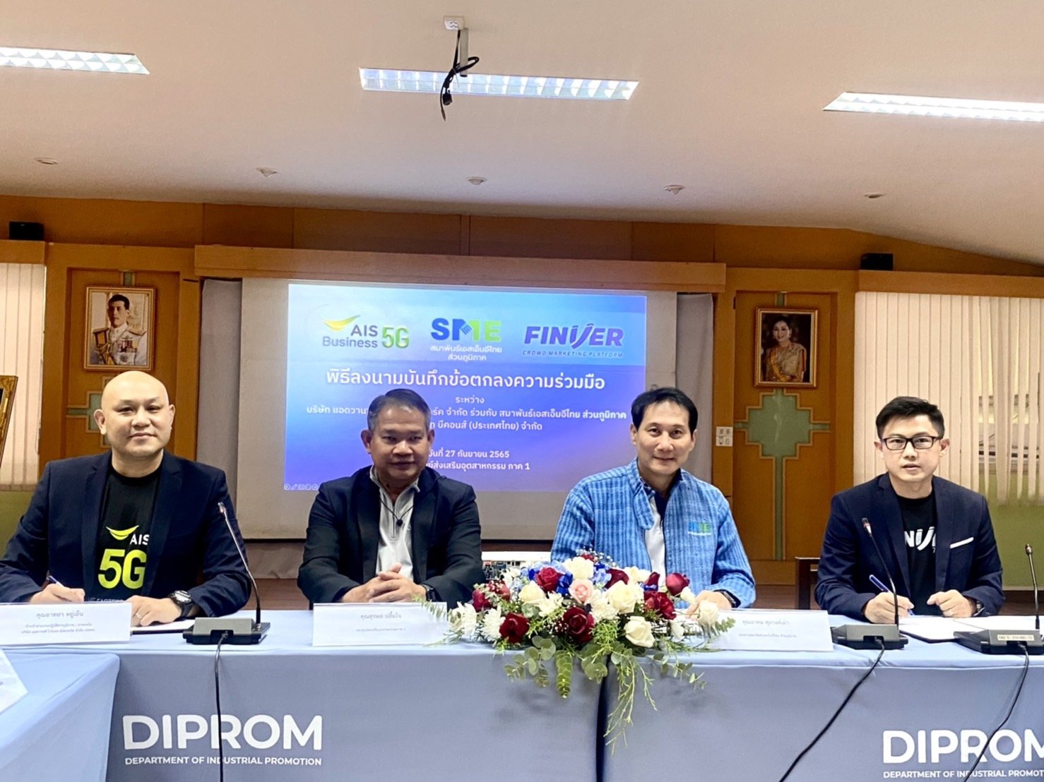 วันที่ 27 กันยายน 2565 นายอาคม ศุภางค์เผ่า ประธานสมาพันธ์เอสเอ็มอีไทย (ส่วนภูมิภาค ) นายอาทยา หยู่เย็น หัวหน้างานปฏิบัติการภูมิภาค – ภาคเหนือ AIS บริษัท แอดวานซ์อินโฟเซอร์วิส จำกัด(มหาชน) และนายธเนศณัฏฐ์ ภนิดาฐิติวัสส์ กรรมการผู้จัดการ บริษัท บีคอนส์ (ประเทศไทย) จำกัด พิธีลงนามบันทึกความเข้าใจและร่วมมือ เพื่อการขับเคลื่อนเศรษฐกิจด้วยเทคโนโลยี ณ ห้องประชุมหิรัญญิกา ศูนย์ส่งเสริมอุตสาหกรรมภาค 1