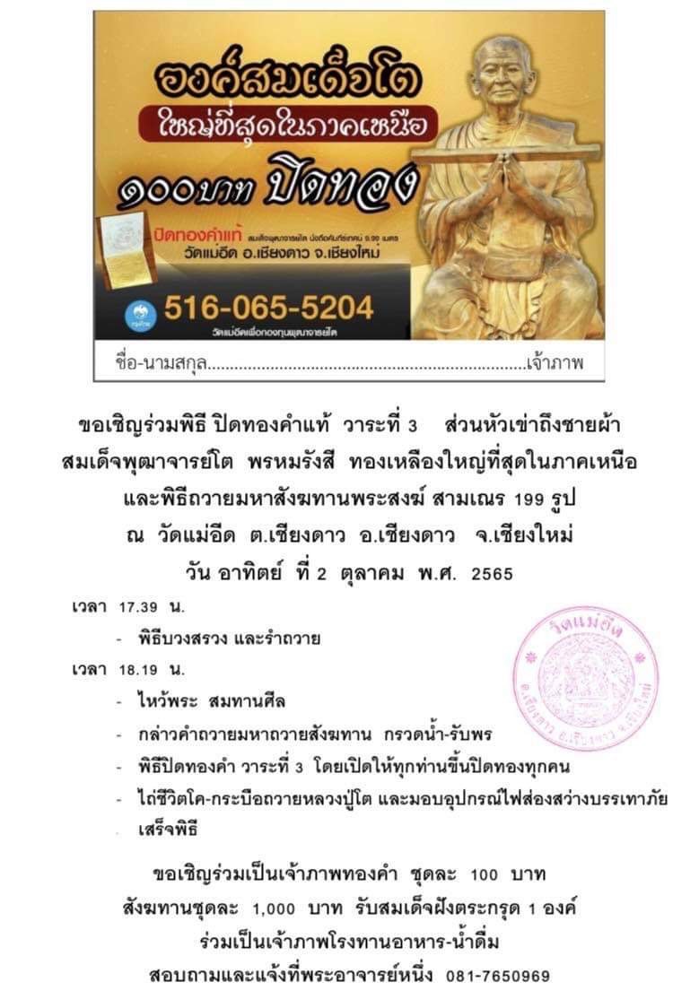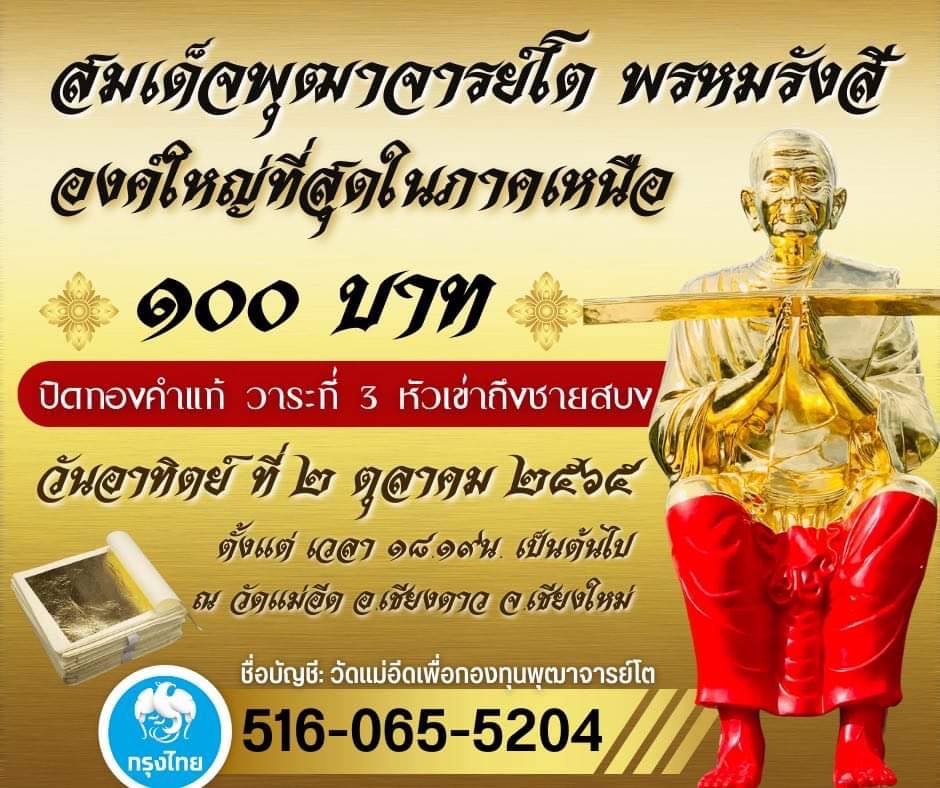 🔶สมเด็จพุฒาจารย์โต พรหมรังสี องค์ทองเหลืองนั่งเทศน์ 9.99 เมตร องค์ใหญ่ที่สุดในภาคเหนือ ณ ลานธรรม วัดแม่อีด(ปากทางถ้ำ) อ.เชียงดาว จ.เชียงใหม่ 🔶