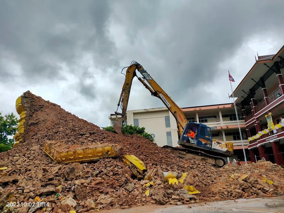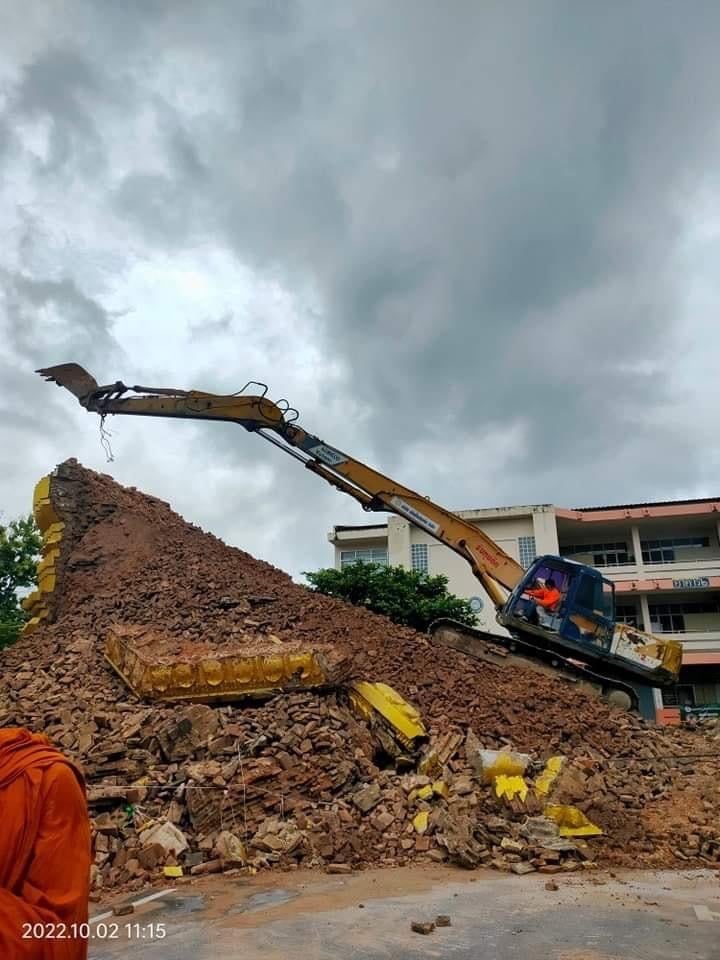 ทั้งนี้เหตุที่ต้องมช้เครื่องจักรหนักในการปรับพื้นที่เพราะต้องเอาเจดีย์อีกด้านลงมาก่อนเพื่อความปลอดภัยด้วย
