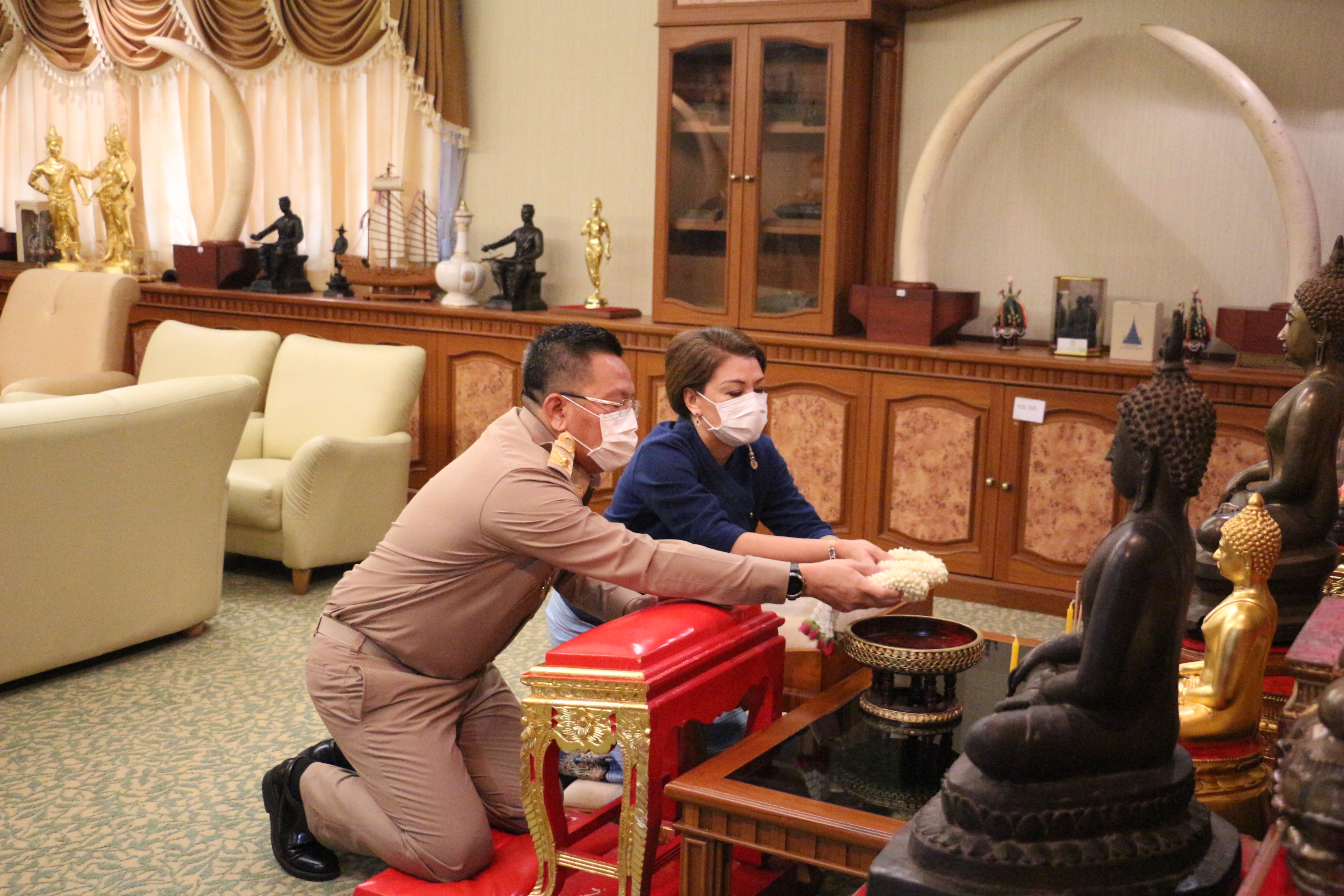 ผู้ว่าราชการจังหวัดเชียงใหม่ พร้อมด้วย นายกเหล่ากาชาดจังหวัดเชียงใหม่ สักการะสิ่งศักดิ์สิทธิ์ภายในศาลากลางจังหวัดเชียงใหม่ เพื่อความเป็นสิริมงคลก่อนเริ่มปฏิบัติงาน
