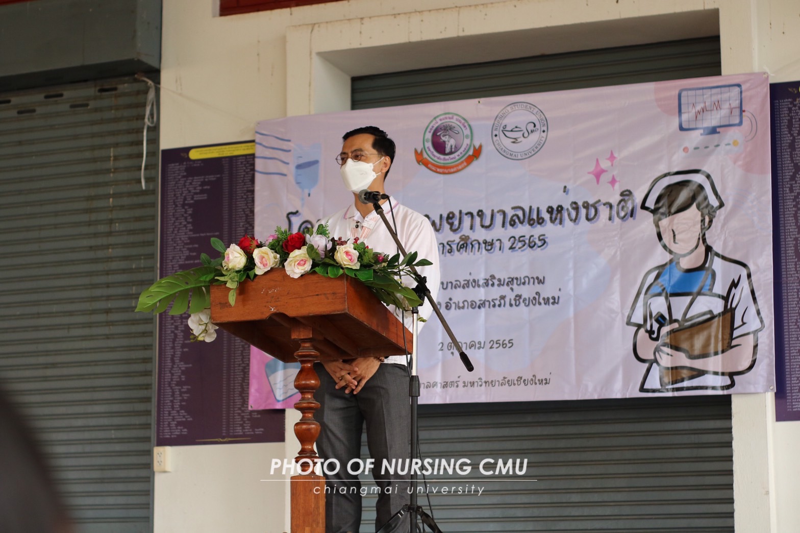 ด้วยสำนึกในพระมหากรุณาธิคุณหาที่สุดมิได้ สโมสรนักศึกษาคณะพยาบาลศาสตร์ มหาวิทยาลัยเชียงใหม่ จัดกิจกรรมวันพยาบาลแห่งชาติ ประจำปี 2565 โดยมี ผู้ช่วยศาสตราจารย์ ดร.ธานี แก้วธรรมานุกูล คณบดีคณะพยาบาลศาสตร์ เป็นประธาน คุณชัชวาล โพธิยอด นายกเทศมนตรีตำบลท่ากว้าง และ คุณชฎารัตน์ เกื้อสุข ผู้อำนวยการโรงพยาบาลส่งเสริมสุขภาพตำบลท่ากว้าง กล่าวต้อนรับผู้เข้าร่วมงาน ซึ่งได้รับความสนใจจากประชาชนทุกเพศทุกวัยร่วมกิจกรรมเป็นจำนวนมาก ณ โรงพยาบาลส่งเสริมสุขภาพตำบลท่ากว้าง อำเภอสารภี จังหวัดเชียงใหม่ เมื่อวันอาทิตย์ที่ 2 ตุลาคม 2565