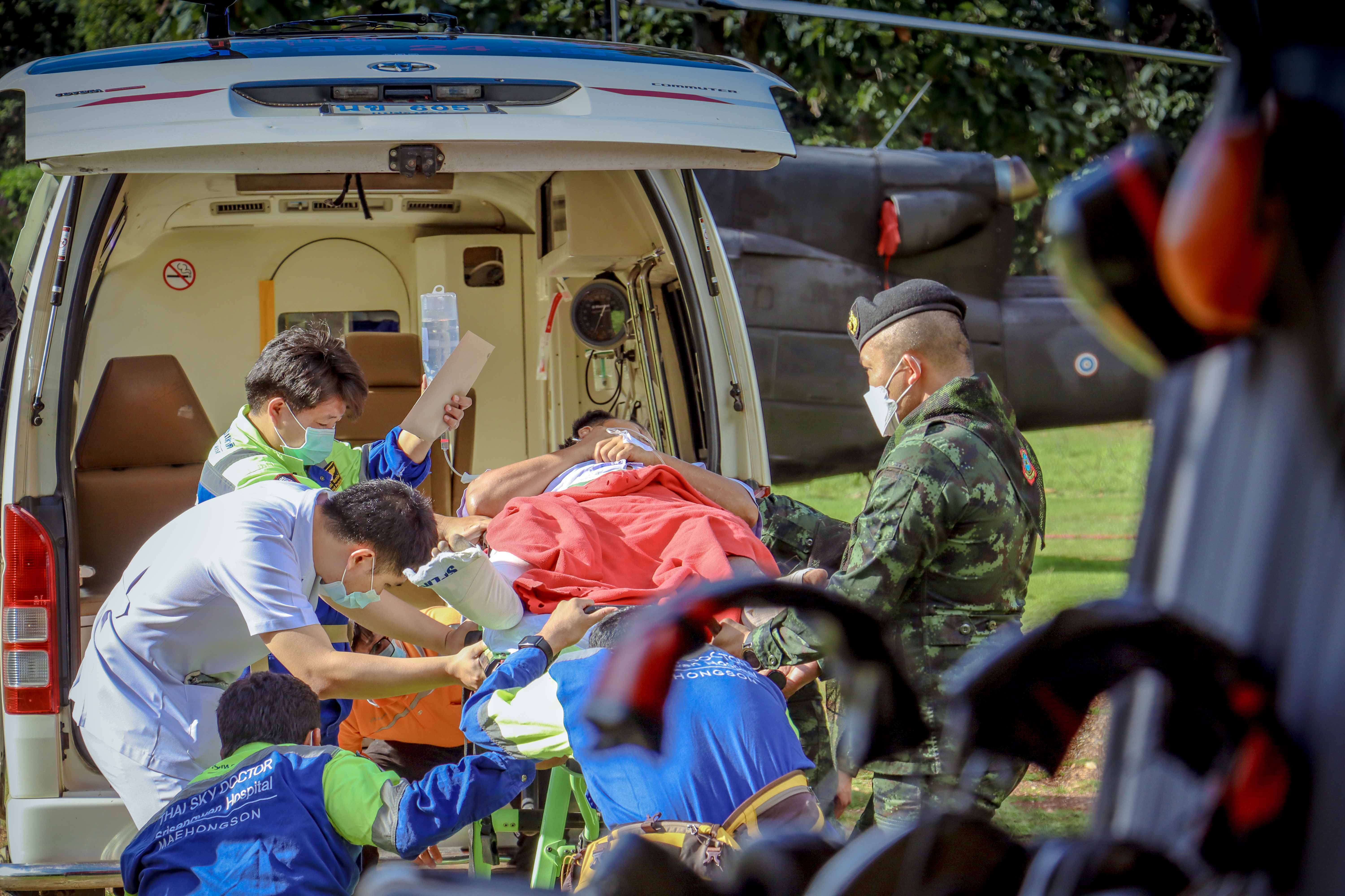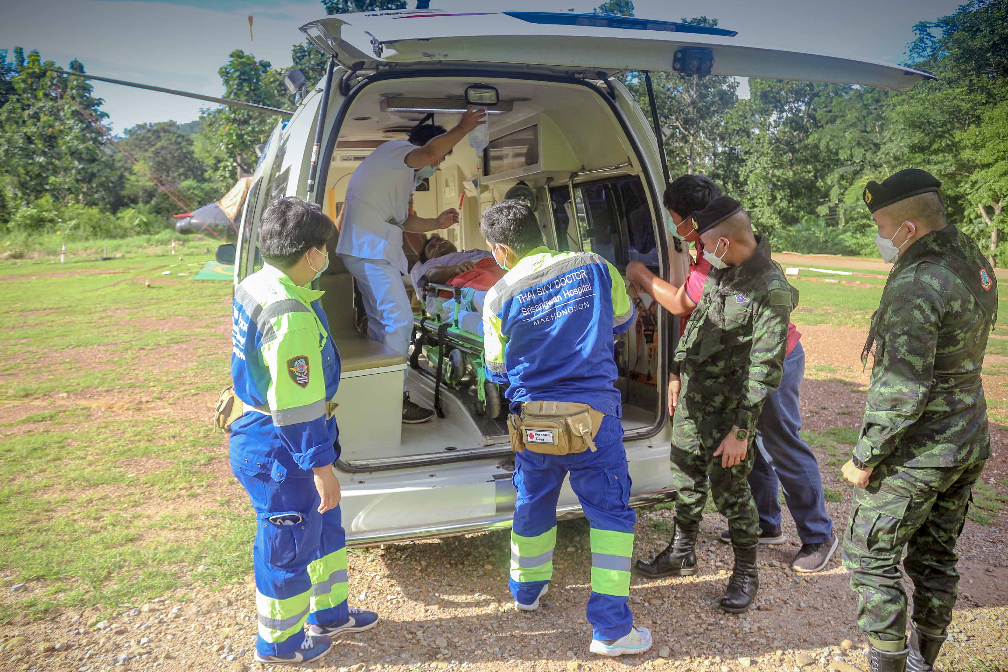 โดย ชุดปฏิบัติการบินทหารบก หน่วยเฉพาะกิจกรมทหารราบที่ 17 และทีมแพทย์ฉุกเฉิน ได้ทำการเคลื่อนย้ายผู้ป่วยทางอากาศยานจาก จุดรับผู้ป่วย สนาม ฮ.ฉก.ร.17 ต.ผาบ่อง อ.เมือง จว.ม.ส. เวลา 16.13 น. ถึง จุดส่งผู้ป่วย สนามฟุตบอล รพ.มหาราชนครเชีนงใหม่ ต.สุเทพ อ.เมือง จว.ช.ม. เวลา 16.55 น. เพื่อส่งผู้ป่วยเข้ารับการรักษา ณ รพ.มหาราชนครเชียงใหม่ ต.สุเทพ อ.เมือง จว.ช.ม.