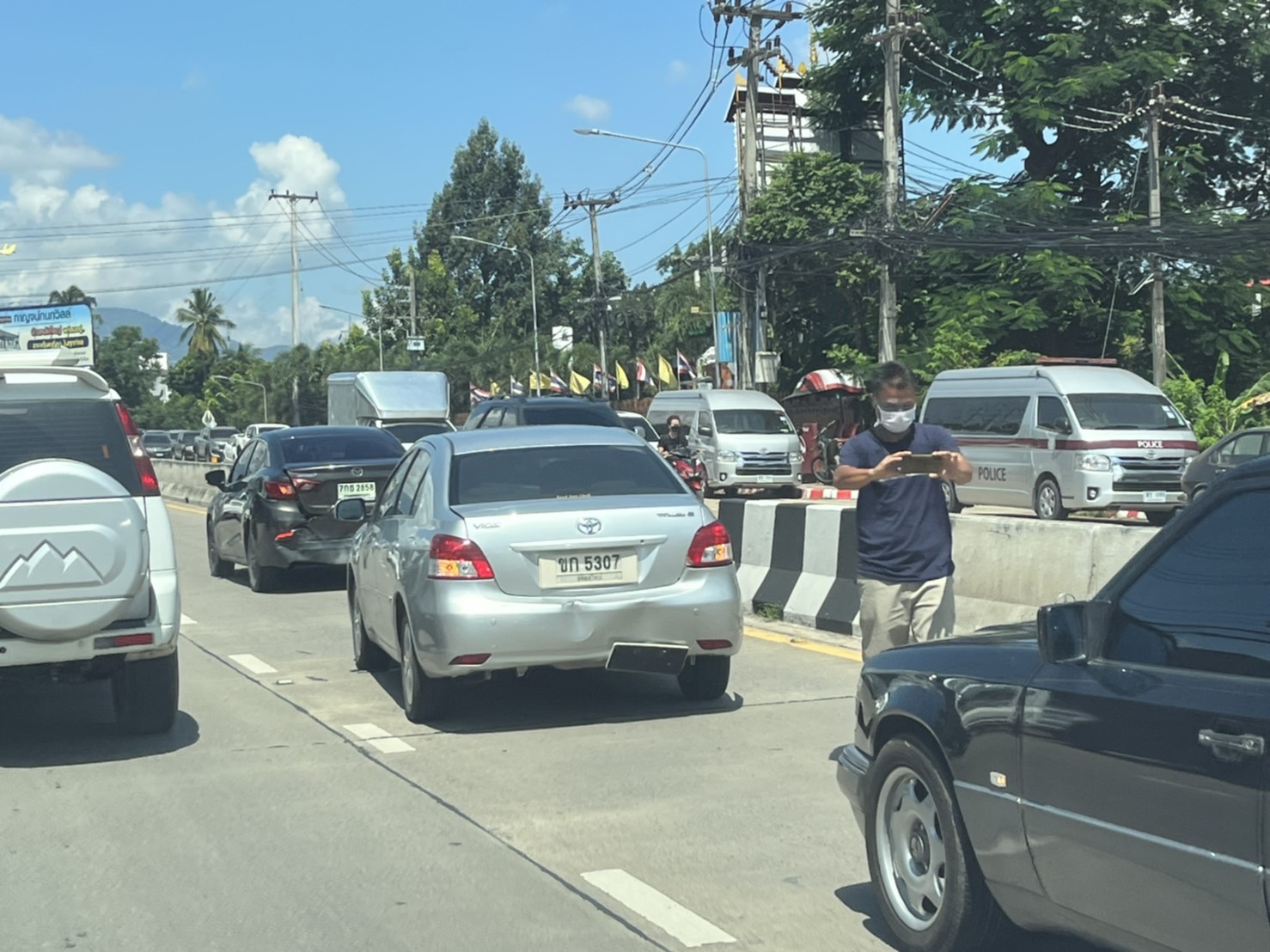 เมื่อวันที่ 6 ต.ค. 2565 เวลา 11.00 น. ผู้สื่อข่าวรายงานเส้นทางถนนมหิดล ฝั่งขาเข้าเมือง มีรถติดหนักเนื่องจาก มีรถเก่งถูกชนท้าย 3 คันรวด จอดได้รับความเสียหาย ตรงข้ามสำนักงานตำรวจภูธรภาค 5