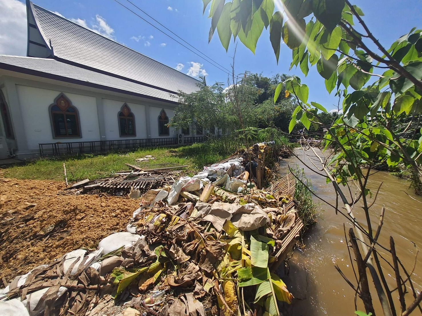 - กำแพงกั้นน้ำ ป้องกันน้ำจากตลิ่งที่พังลง ปัจจุบัน รอการก่อสร้างอยู่