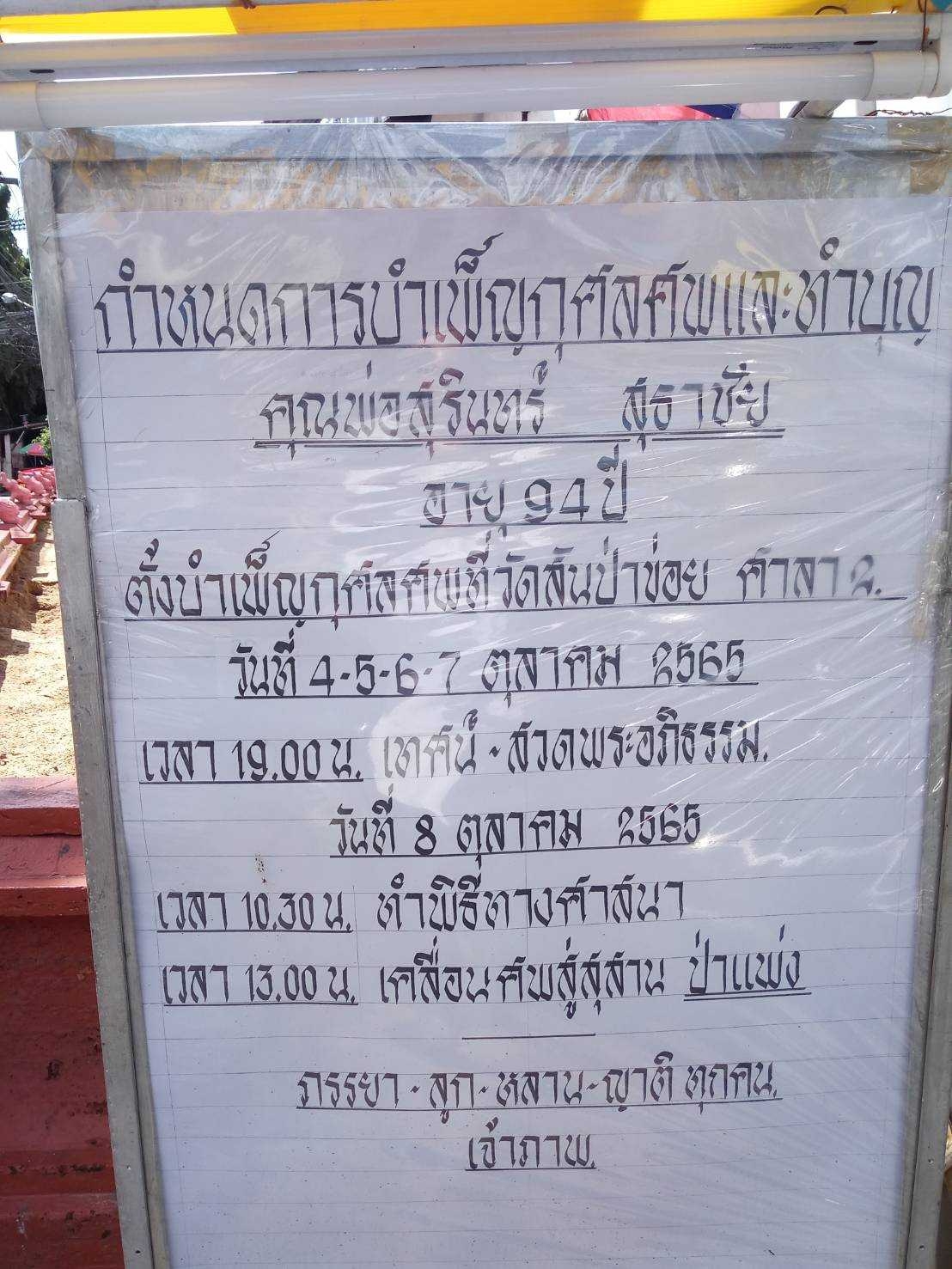 ร่วมทำบุญและวางหรีดงานบำเพ็ญกุศลศพ อ.สุรินทร์ สุธาชัย อายุ 94 ปี อดีตผู้อำนวยการ สำนักงานวิทยาเขตเชียงใหม่ โดยวันที่ 4 -7 ตุลาคม 2565 มีเทศน์-สวดอภิธรรมทุกคืน ณ วัดสันป่าข่อย และวันที่ 8 ตุลาคม 2565 เวลา 10.30 น. ทำบุญพิธีทางศาสนา เวลา 13.00 น. เคลื่อนศพสู่สุสานวัดป่าแพ่ง/ประชุมเพลิง