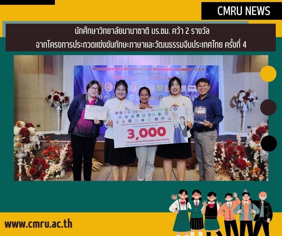 นักศึกษาวิทยาลัยนานาชาติ มร.ชม. คว้า 2 รางวัลจากโครงการประกวดแข่งขันทักษะภาษาและวัฒนธรรมจีน ประเทศไทย ครั้งที่ 4