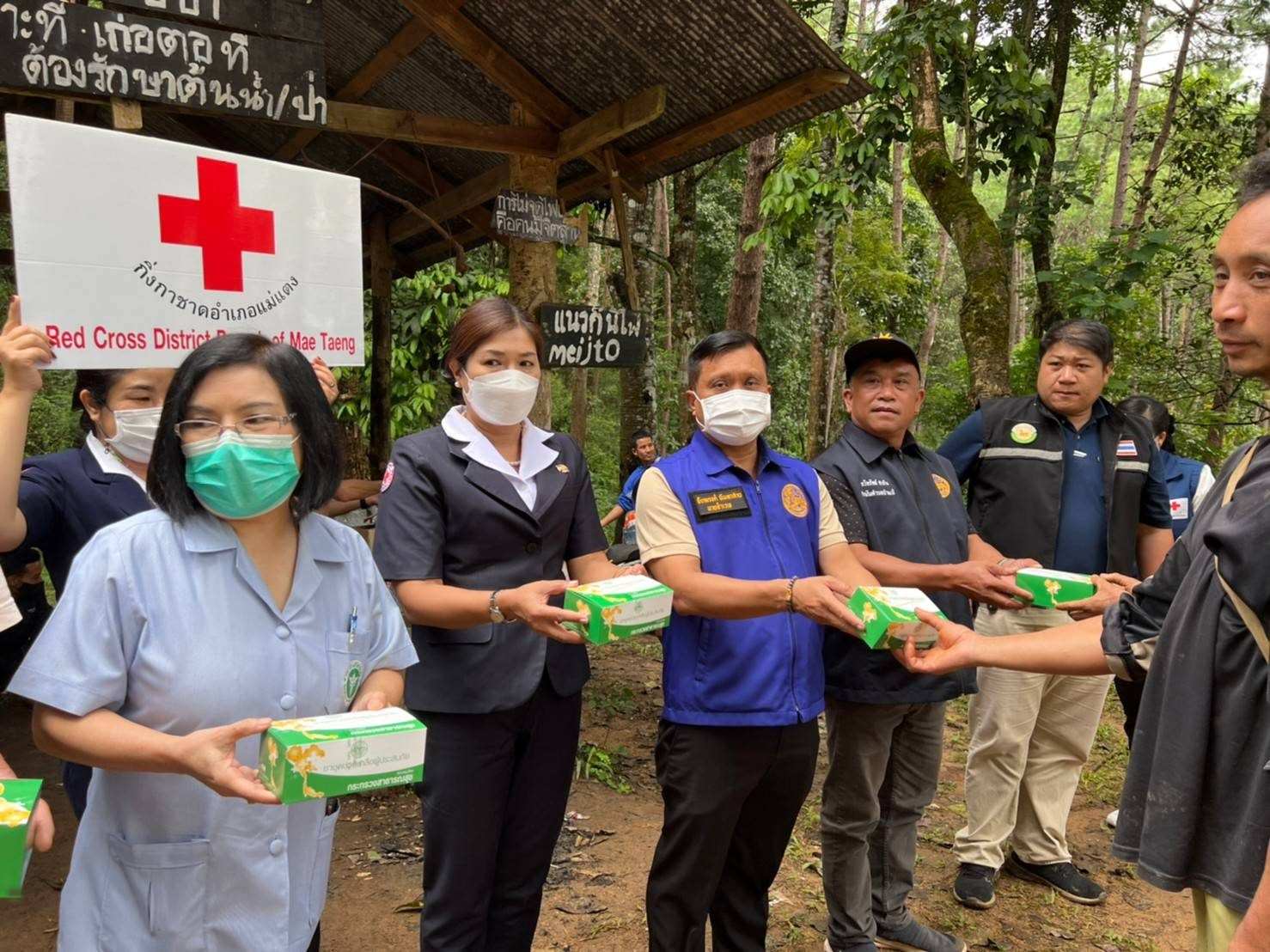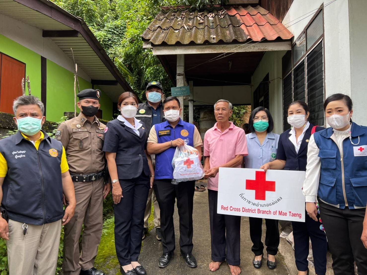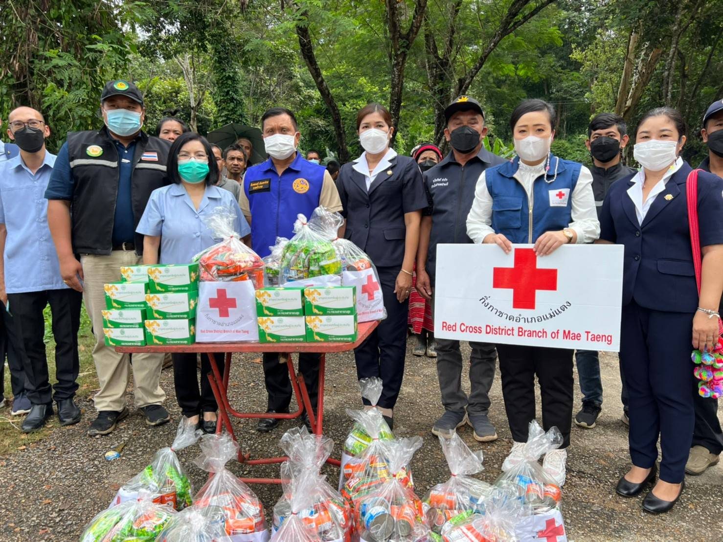 วันที่ 11 ตุลาคม 2564 ที่ผ่านมา นายชัยณรงค์ นันตาสาย นอภ.แม่แตง และ นางทิพย์วรรณ์ นันตาสาย นายกกิ่งกาชาด อ.แม่แตง พร้อมด้วย ปลัดอำเภอ ,สาธารณสุขอำเภอ ,รองนายก อบต.ป่าแป๋ ,เจ้าหน้าที่ตำรวจ สภ.ป่าแป๋ ,ผอ.รพ.สต.ป่าแป๋ ,กำนัน ผู้ใหญ่บ้าน ,ส.อบต. คณะกรรมการกิ่งกาชาด และ สมาชิก อส.อ.แม่แตง ลงพื้นที่เยี่ยมให้กำลังใจและมอบถุงยังชีพจากกิ่งกาชาด อ.แม่แตง จำนวน 70 ชุด ซึ่งได้รับมอบจากสถานีกาชาดที่ 3 และรับบริจาคในพื้นที่ มอบให้แก่ผู้ประสบเหตุดินสไลด์ปิดทับเส้นทางสัญจรและทับบ้านเรือนเสียหาย จำนวน 4 หมู่บ้าน ได้แก่ หมู่ 4 ,5 ,8 ,11 ต.ป่าแป๋ อ.แม่แตง จ.เชียงใหม่