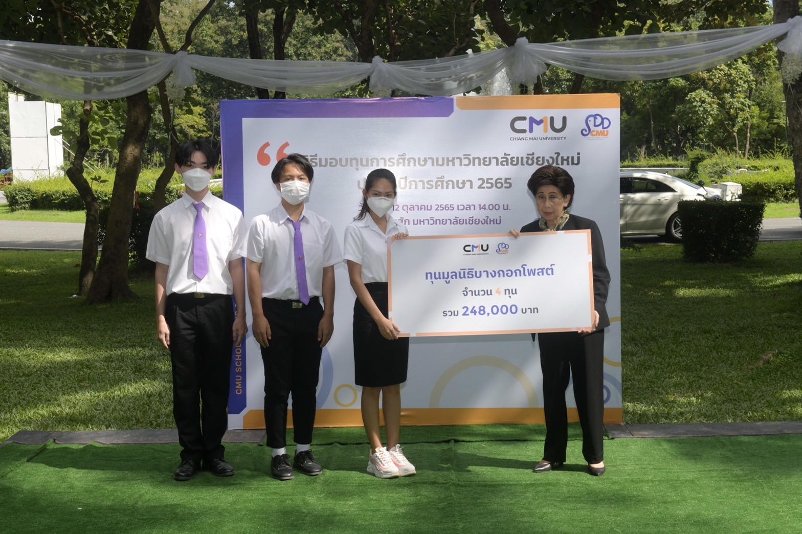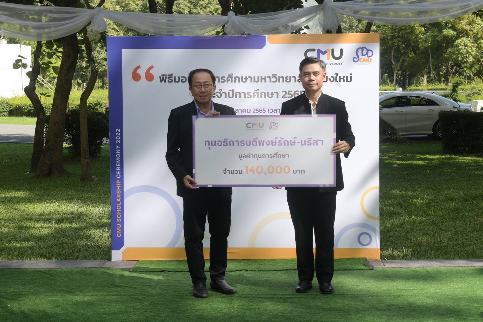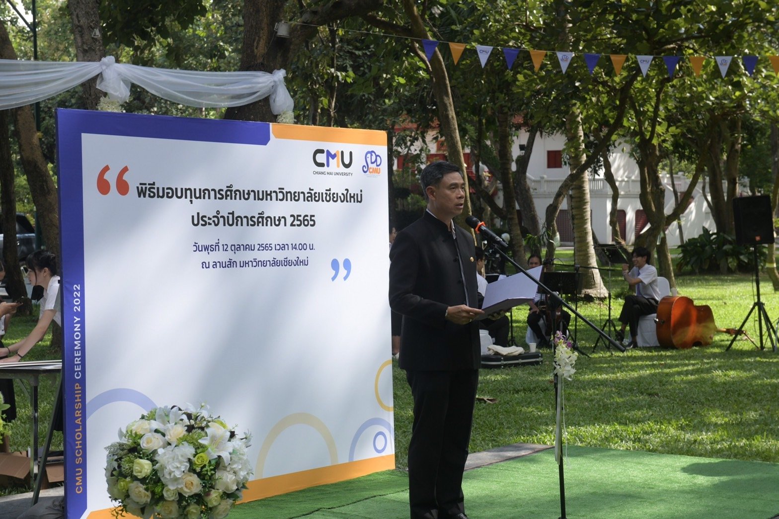 โดยมีศาสตราจารย์ ดร.นพ.พงษ์รักษ์ ศรีบัณฑิตมงคล อธิการบดีมหาวิทยาลัยเชียงใหม่ เป็นผู้แทนในการมอบทุนฯ และกล่าวแสดงความยินดี คุณวีณา ภัทรประสิทธิ์ ประธานกรรมการส่งเสริมมหาวิทยาลัยเชียงใหม่ กล่าวให้โอวาท รองศาสตราจารย์ประเสริฐ ฤกษ์เกรียงไกร รองอธิการบดีมหาวิทยาลัยเชียงใหม่ กล่าวรายงาน พร้อมด้วยคณะผู้บริหาร คณะกรรมการส่งเสริมมหาวิทยาลัยเชียงใหม่ ผู้แทนจากหน่วยงาน องค์กรต่างๆ คณาจารย์ เจ้าหน้าที่ ร่วมมอบทุนการศึกษา ณ ลานสัก มหาวิทยาลัยเชียงใหม่ เมื่อวันพุธที่ 12 ตุลาคม พ.ศ.2565