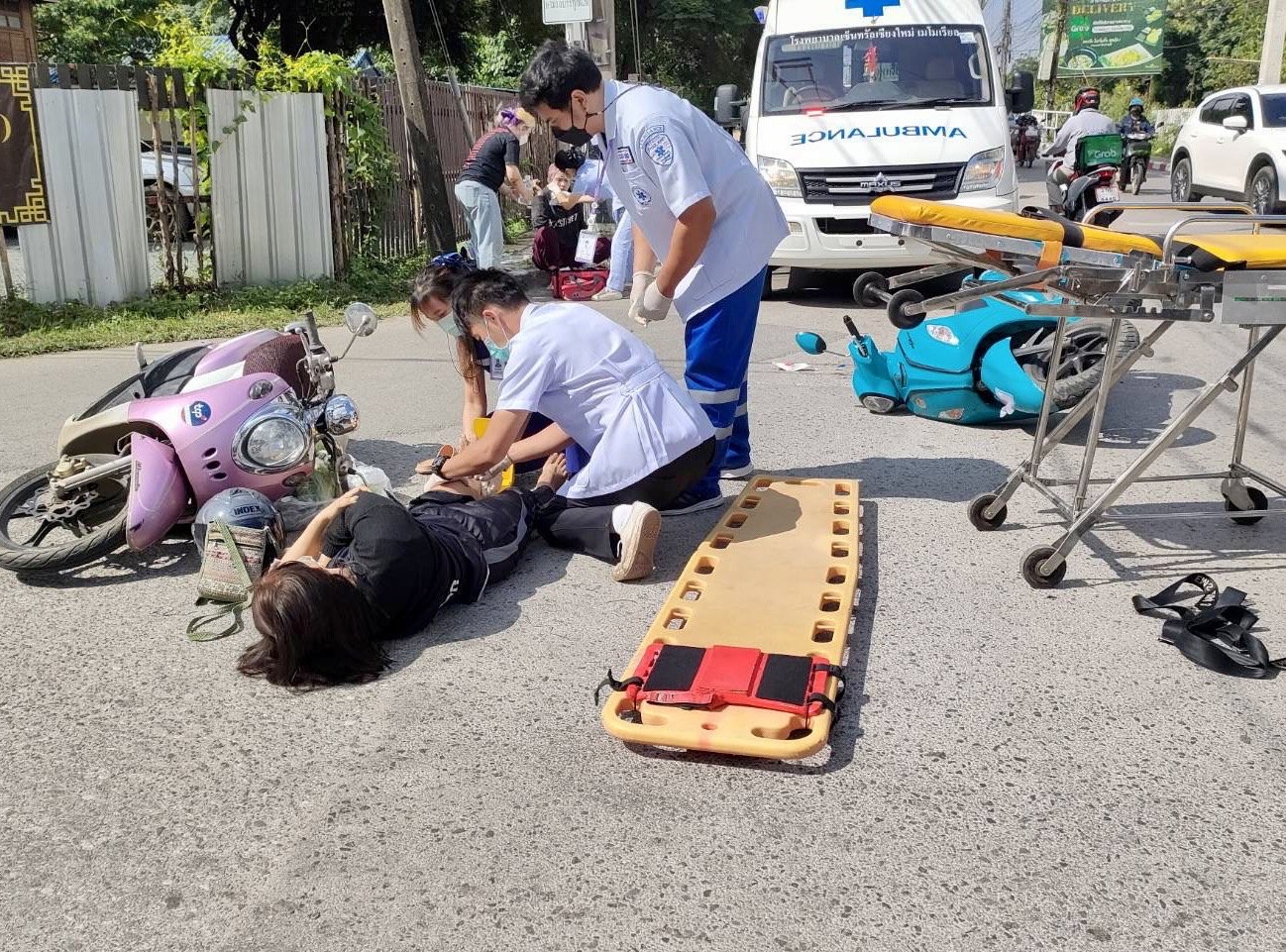 “จราจรเชียงใหม่รณรงค์การขับขี่เพื่อความปลอดภัยสวมใส่หมวกนิรภัยเพื่อลดความรุนแรงของการเกิดอุบัติเหตุ” จราจรเชียงใหม่ได้รับแจ้งเหตุจักรยานยนต์ประสบอุบัติเหตุระหว่างรถจักรยานยนต์กับรถจักรยานยนต์บริเวณแยกนครพิงค์ตะวันออกช่วงเช้าที่ผ่านมา จึงเข้าตรวจสอบ และให้ความช่วยเหลือประสานรถพยาบาลเข้าปฐมพยาบาลนำโรงพยาบาลเรียบร้อย