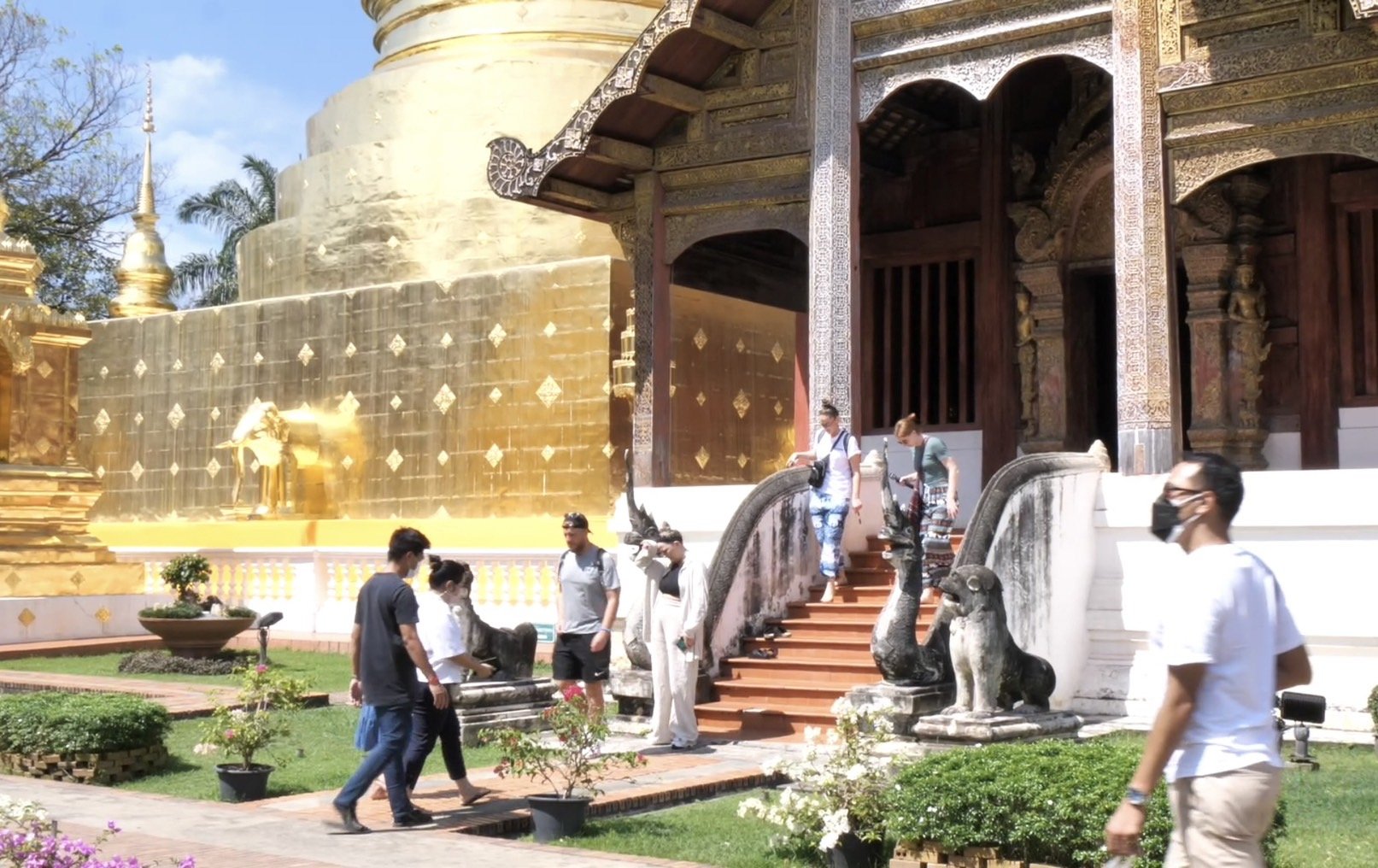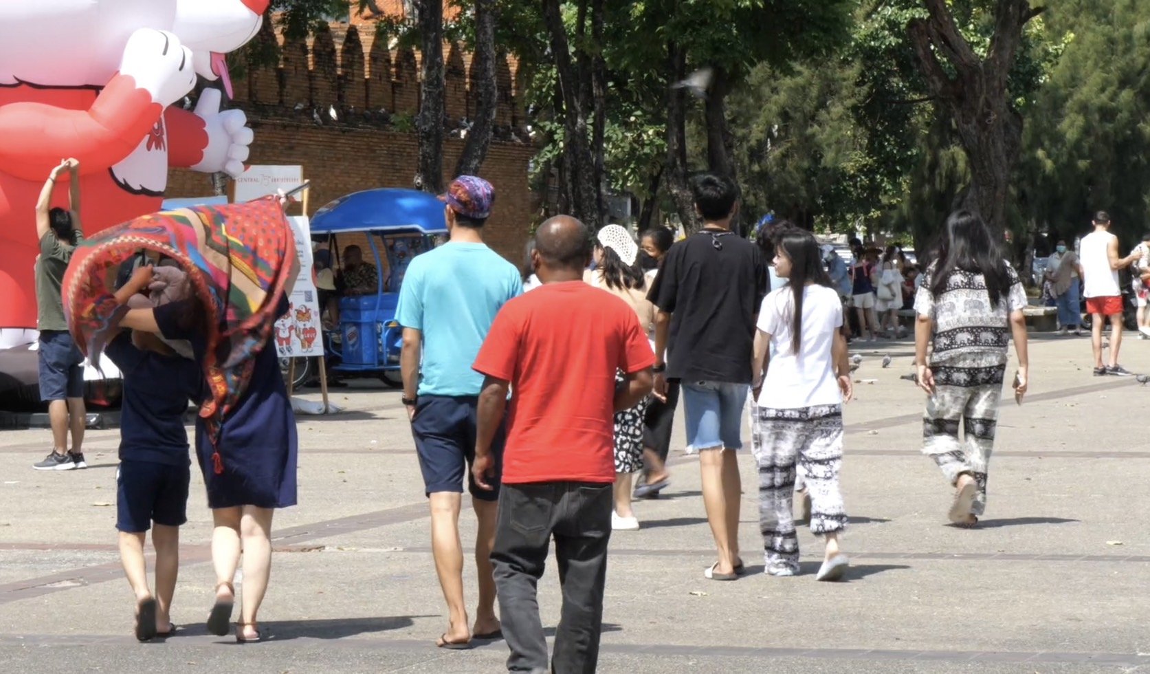 โดยที่ลานเอนกประสงค์ข่วงประตูท่าแพ นักท่องเที่ยวพากันไปเดินเที่ยวชมทัศนีย์ภาพของแลนด์มาร์คกลางเมืองและถ่ายภาพกับฝูงนกพิราบ เช่นเดียวกับตามวัดวาอารามหลายแห่ง อย่างเช่นที่วัดพระสิงห์วรมหาวิหาร มีนักท่องเที่ยวเข้าไปกราบขอพรและเที่ยวชมความงดงามและความเก่าแก่ของสถาปัตยกรรมล้านนา