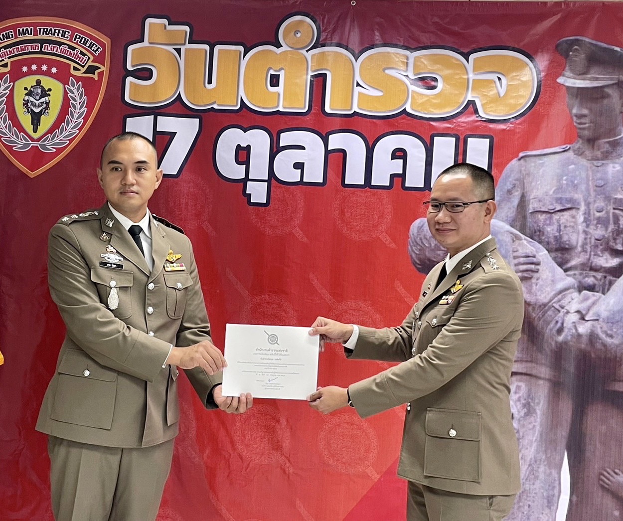 พร้อมทั้งได้มีพิธีมอบใบประกาศเกียรติคุณให้กับข้าราชการสังกัดกลุ่มงานจราจรตำรวจภูธรจังหวัดเชียงใหม่และมอบโล่เกียรติคุณให้กับผู้บริหารโรงเรียนเทพบดินทร์วิทยาเชียงใหม่ผู้ให้การสนับกิจกรรมงานจราจรพร้อมนี้ได้มอบทุนการศึกษาให้กับบุตรข้าราชการตำรวจจราจรเพื่อเป็นขวัญกำลังใจซึ่งเป็นไปแบบเรียบง่ายสมเกียรติในการปฏิบัติหน้าที่ชีวิตรับใช้ประชาชน