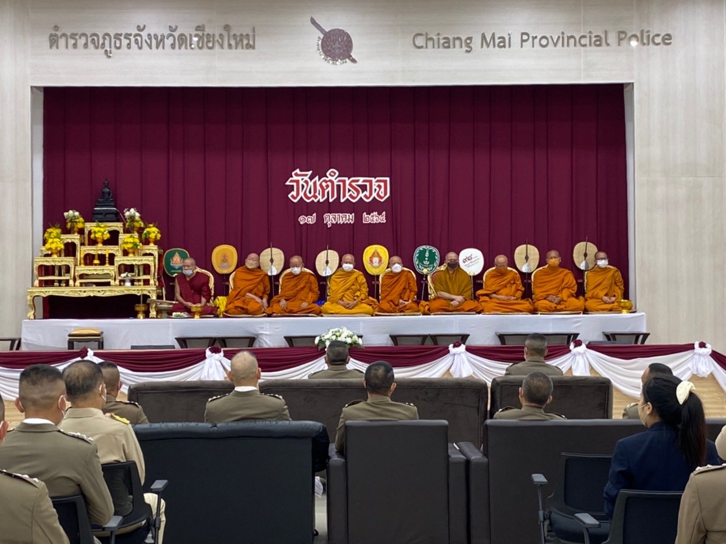 วันที่ 17 ต.ค.2565 เวลา 09.49 น. พล.ต.ต.เฉลิมพล จินตรัตน์ รอง ผบช.ภ.5 ได้รับมอบหมายจาก ผบช.ภ.5 ให้เป็นประธานพิธีการทางศาสนา เนื่องในวันตำรวจ ประจำปี 2565 โดยมี พล.ต.ต.ธวัชชัย พงษ์วิวัฒนชัย ผบก.ภ.จว.เชียงใหม่, ข้าราชการตำรวจผู้เกี่ยวข้อง และ ตัวแทนหน่วยงานรัฐและเอกชนในพื้นที่ เข้าร่วม ณ ตำรวจภูธรจังหวัดเชียงใหม่ อ.เมือง จ.เชียงใหม่