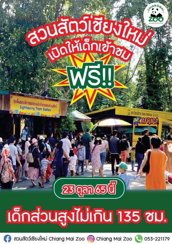 นายวุฒิชัย ม่วงมัน ผู้อำนวยการสวนสัตว์เชียงใหม่ เผยว่า เนื่องในวันหยุดยาวในสัปดาห์ที่ผ่านมา ทำให้สวนสัตว์เชียงใหม่ได้รับเสียงตอบรับจากนักท่องเที่ยวหลั่งไหลมาใช้บริการเป็นจำนวนมาก หลังจากที่มติคณะกรรมการองค์การสวนสัตว์แห่งประเทศไทย ได้อนุมัติให้เด็กเข้าสวนสัตว์ฟรี ทั้ง 6 แห่งนั้น และในวันที่ 23 ตุลาคม 2565 เนื่องในวันปิยมหาราช ซึ่งถือเป็นวันหยุดราชการ ได้เปิดโอกาสให้เด็กๆ เข้าฟรีอีกครั้ง สำหรับเด็กที่มีความสูงไม่เกิน 135 เซนติเมตร เฉพาะวันที่ 23 ตุลาคม นี้เท่านั้น เพื่อให้เด็กๆ ได้เข้ามาเรียนรู้เกี่ยวกับสัตว์ป่าและเพลิดเพลินกันได้ทั้งครอบครัว ทำกิจกรรมร่วมกันในวันหยุดยาว ซึ่งภายในสวนสัตว์เชียงใหม่ ได้มีกิจกรรมมากมายรองรับนักท่องเที่ยวในช่วงนี้ สัมผัสกับสัตว์เล็ก น่ารักๆ นานาชนิดอย่างใกล้ชิด บริเวณมินิซู ชมความน่ารักของหมีแพนด้าหลินฮุ่ยในบ้านที่ใหญ่กว่าเดิมชมการให้อาหาร 4 รอบต่อวัน (ทั้งนี้ขึ้นอยู่กับพฤติกรรมของหมีแพนด้าแต่ละช่วงเวลา) ชมสัตว์โลกใต้น้ำทะเลบนดอยที่เชียงใหม่ ซู อควาเรียม
