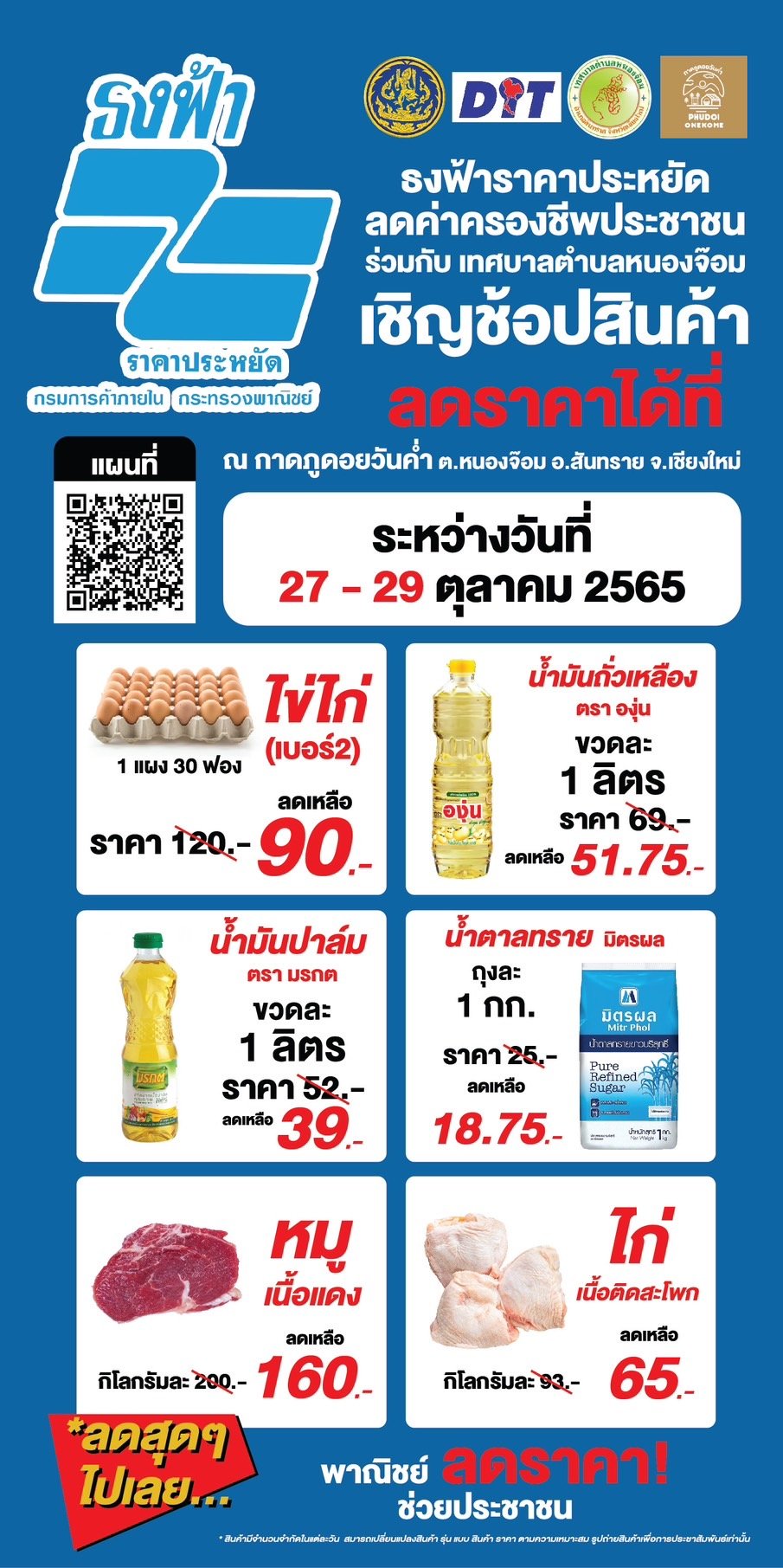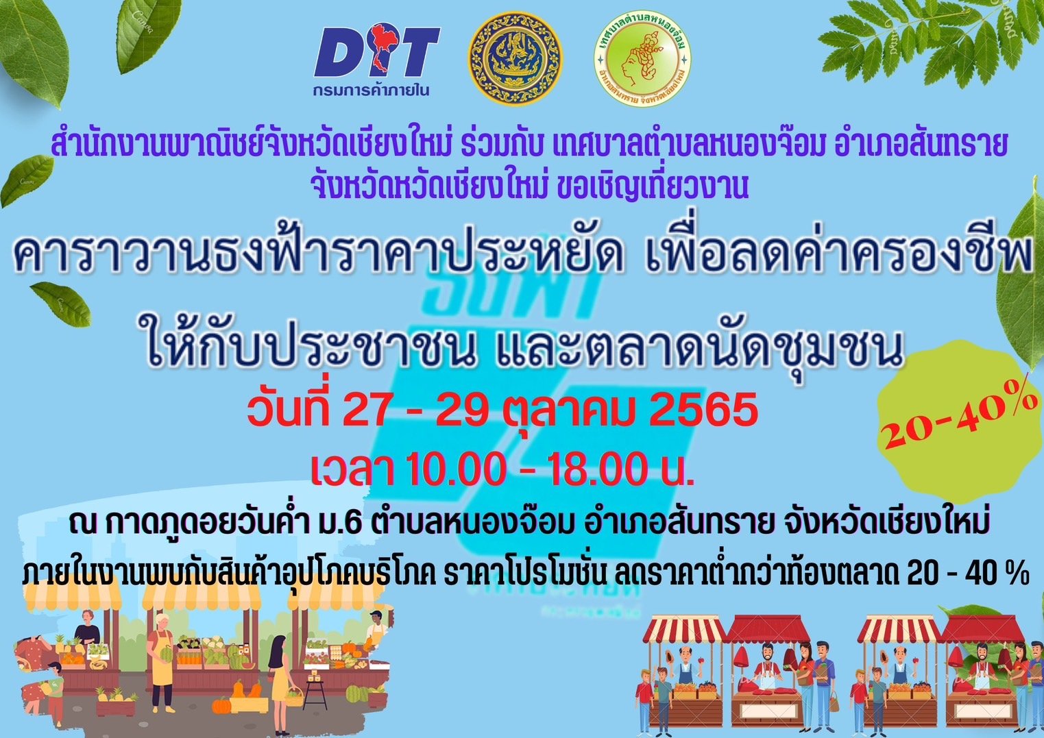 สำนักงานพาณิชย์จังหวัดเชียงใหม่ เชิญชวนประชาชนร่วมงานคาราวานธงฟ้าราคาประหยัด ลดค่าครองชีพให้กับประชาชน และตลาดนัดชุมชน 27-29 ตุลาคม นี้