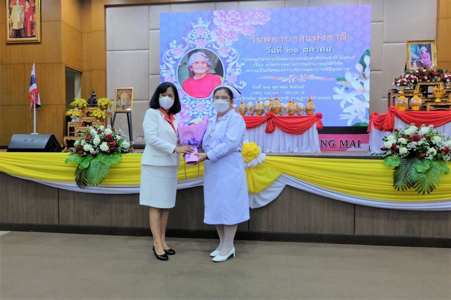 ผู้แทนสภาการพยาบาลประจำจังหวัดเชียงใหม่ นำโดย พ.ว ศรีสังวาลย์ เนตรอนงค์ หัวหน้าภารกิจด้านการพยาบาล รพ.นครพิงค์ ร่วมกับสมาคมพยาบาลแห่งประเทศไทยฯ สาขาภาคเหนือ สมาคมพยาบาลแมคคอร์มิค สมาคมศิษย์เก่าวิทยาลัยพยาบาลบรมราชชนนีเชียงใหม่ โรงพยาบาลมหาราชนครเชียงใหม่ โรงพยาบาลชุมชนจังหวัดเชียงใหม่ วิทยาลัยพยาบาลบรมราชชนนีเชียงใหม่ โรงพยาบาลธัญญารักษ์เชียงใหม่ โรงพยาบาลเอกชนในจังหวัดเชียงใหม่ ร่วมกันจัดงานวันพยาบาลแห่งชาติประจำปี 2565 อาศิรวาทราชสดุดี สมเด็จพระศรีนครินทราบรมราชชนนี ณ ห้องประชุมชั้น 7 ห้อง C71 อาคารอำนวยการผู้ป่วยนอกและอุบัติเหตุฉุกเฉิน โรงพยาบาลนครพิงค์ จังหวัดเชียงใหม่ เมื่อวันที่ 21 ตุลาคม 2565