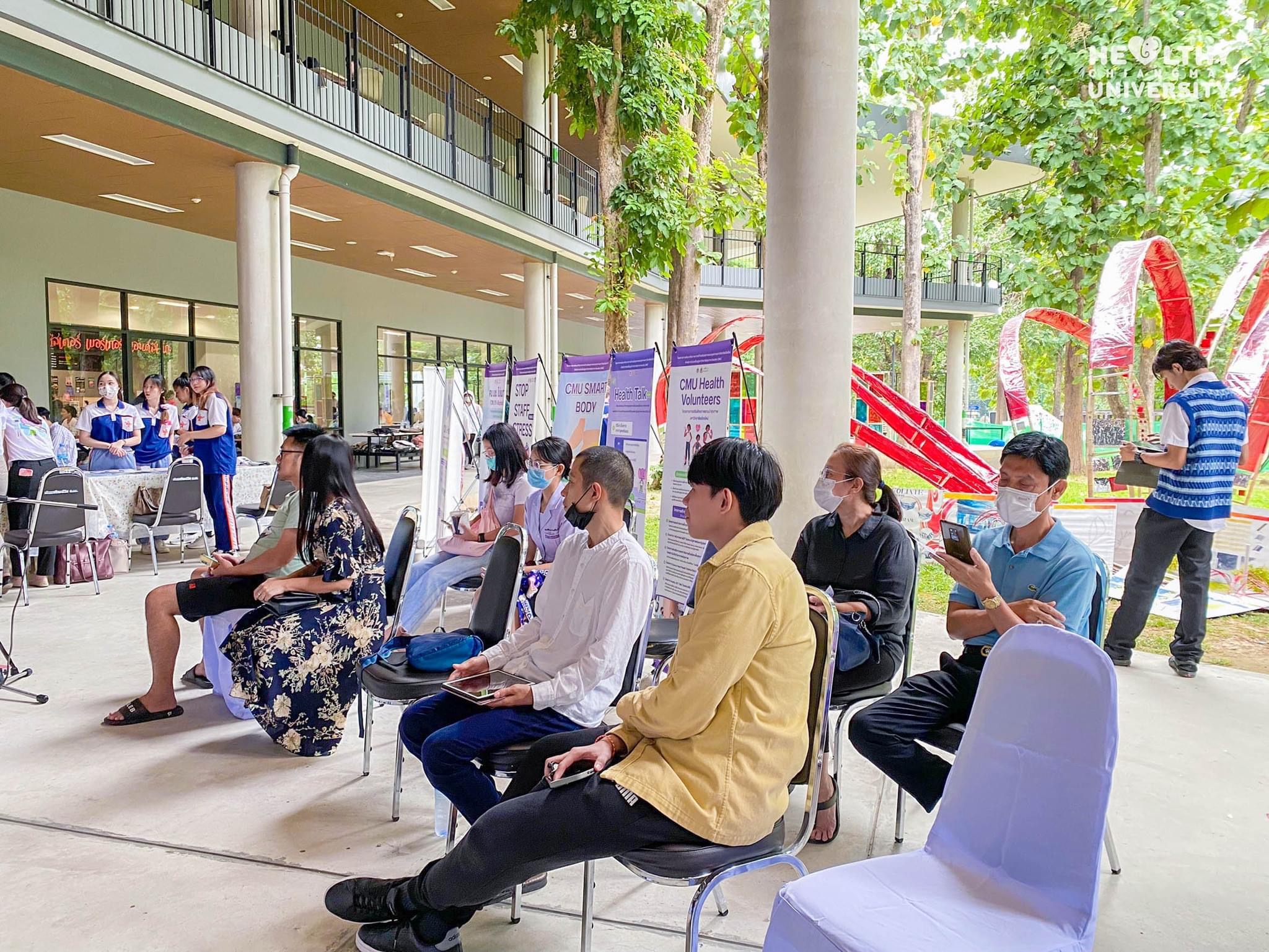 ร่วมแลกเปลี่ยนประสบการณ์การดูแลสุขภาพ ได้รับความสนใจจากผู้เข้าร่วมงานเป็นอย่างมาก ตลอดงานมีผู้สนใจเข้าคิวรอใช้บริการด้านสุขภาพอย่างต่อเนื่อง ณ ลานกิจกรรม ศูนย์อาหารมหาวิทยาลัยเชียงใหม่ (กินในมอ) เมื่อวันศุกร์ที่ 21 ตุลาคม 2565