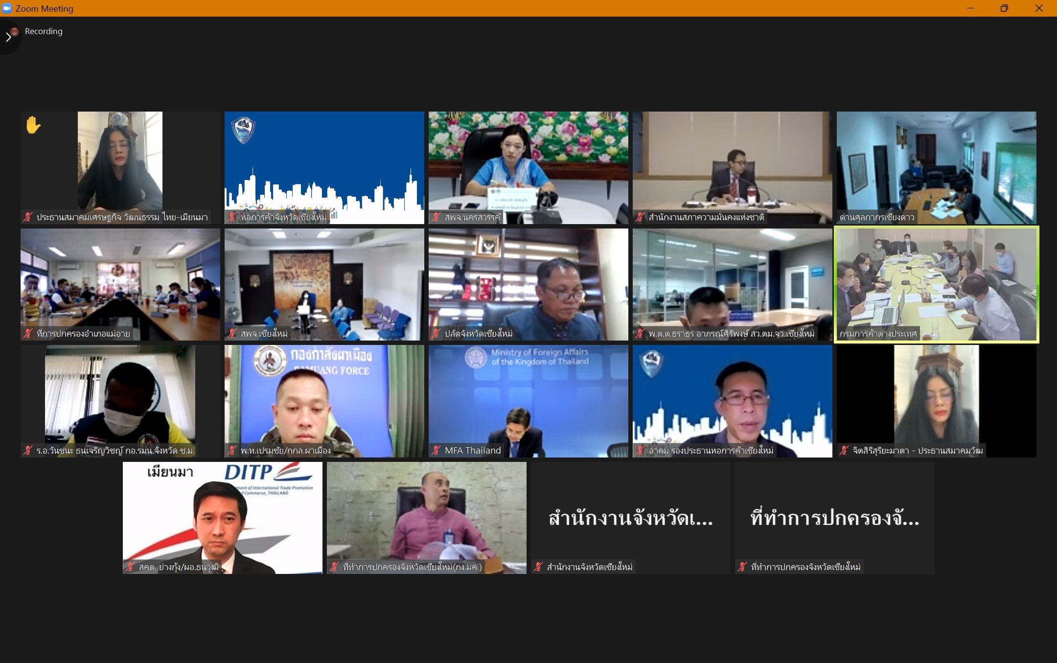 วันที่ 20 ตุลาคม 2565 นายอาคม สุวรรณกันธา รองประธานกรรมการ เป็นผู้แทนหอการค้าจังหวัดเชียงใหม่ เข้าร่วมการประชุมเตรียมการสำหรับการตรวจเยี่ยม และติตดามสถานการณ์การค้าชายแดนไทย – เมียนมา ณ ช่องทางบ้านสันตันดู่ อำเภอแม่อาย จังหวัดเชียงใหม่ ผ่านระบบออนไลน์ โดยการประชุมเพื่อเตรียมการสำหรับการตรวจเยี่นม และติดตามสถานการณ์ของ นายจุรินทร์ ลักษณวิศิษฎ์ รองนายกรัฐมนตรี และรัฐมนตรีว่าการกระทรวงพาณิชย์ และคณะ ที่มีกำหนดการเดินทางมาปฏิบัติราชการ ในระหว่างวันที่ 27 – 28 ตุลาคม 2565