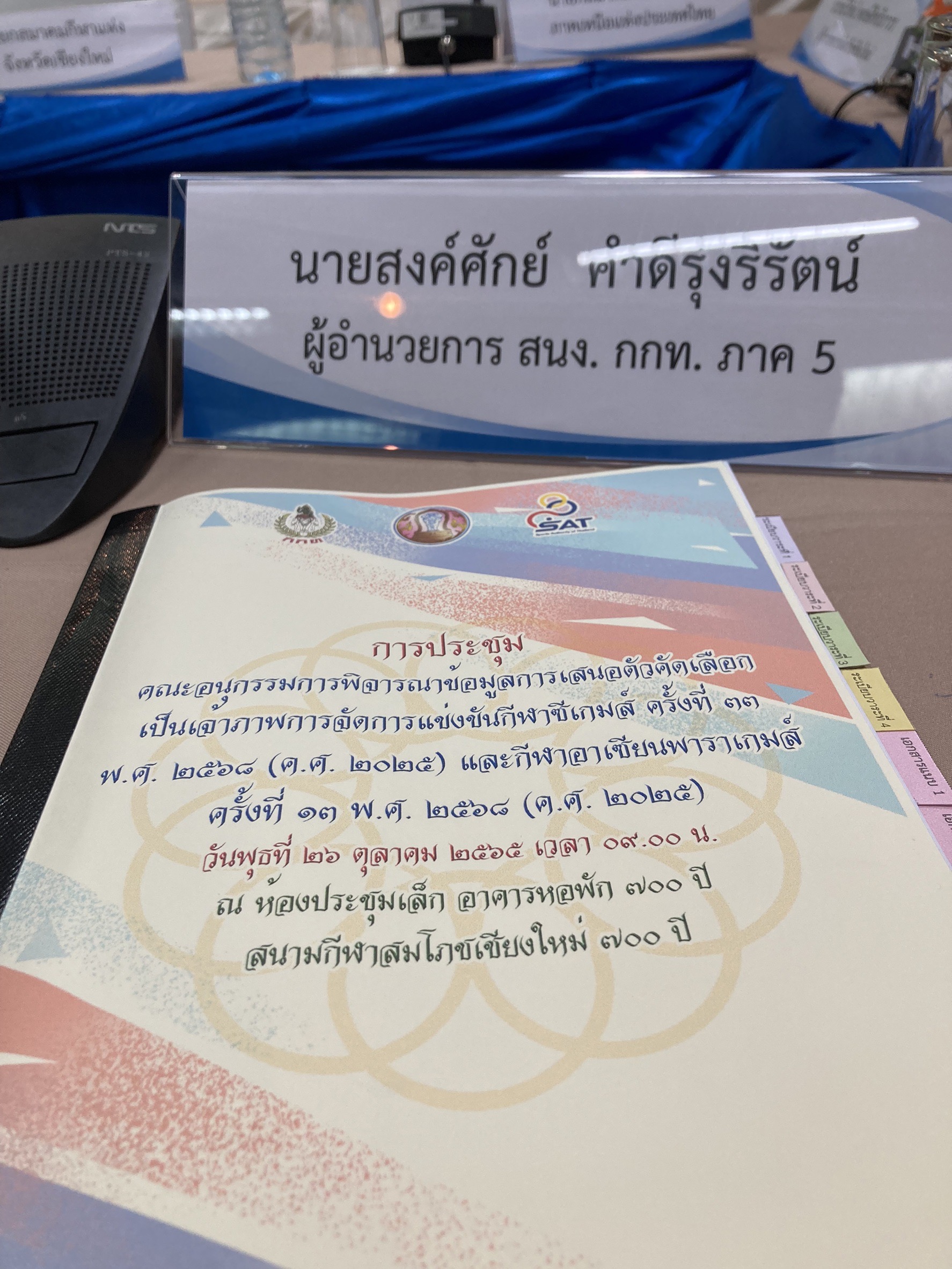โดยมติที่ประชุมเห็นชอบให้จังหวัดเชียงใหม่ เป็นเจ้าภาพจัดการแข่งขันฯ แบบจังหวัดเดียว โดยจะนำข้อมูลบทสรุปทั้งหมดนำเสนอผู้ว่าการการกีฬาแห่งประเทศไทย และคณะกรรมการ เพื่อพิจารณาในการคัดเลือก จังหวัดเชียงใหม่ เป็นเจ้าภาพจัดการแข่งขันกีฬาซีเกมส์ฯ และกีฬาอาเซียนพาราเกมส์ในครั้งนี้ต่อไป