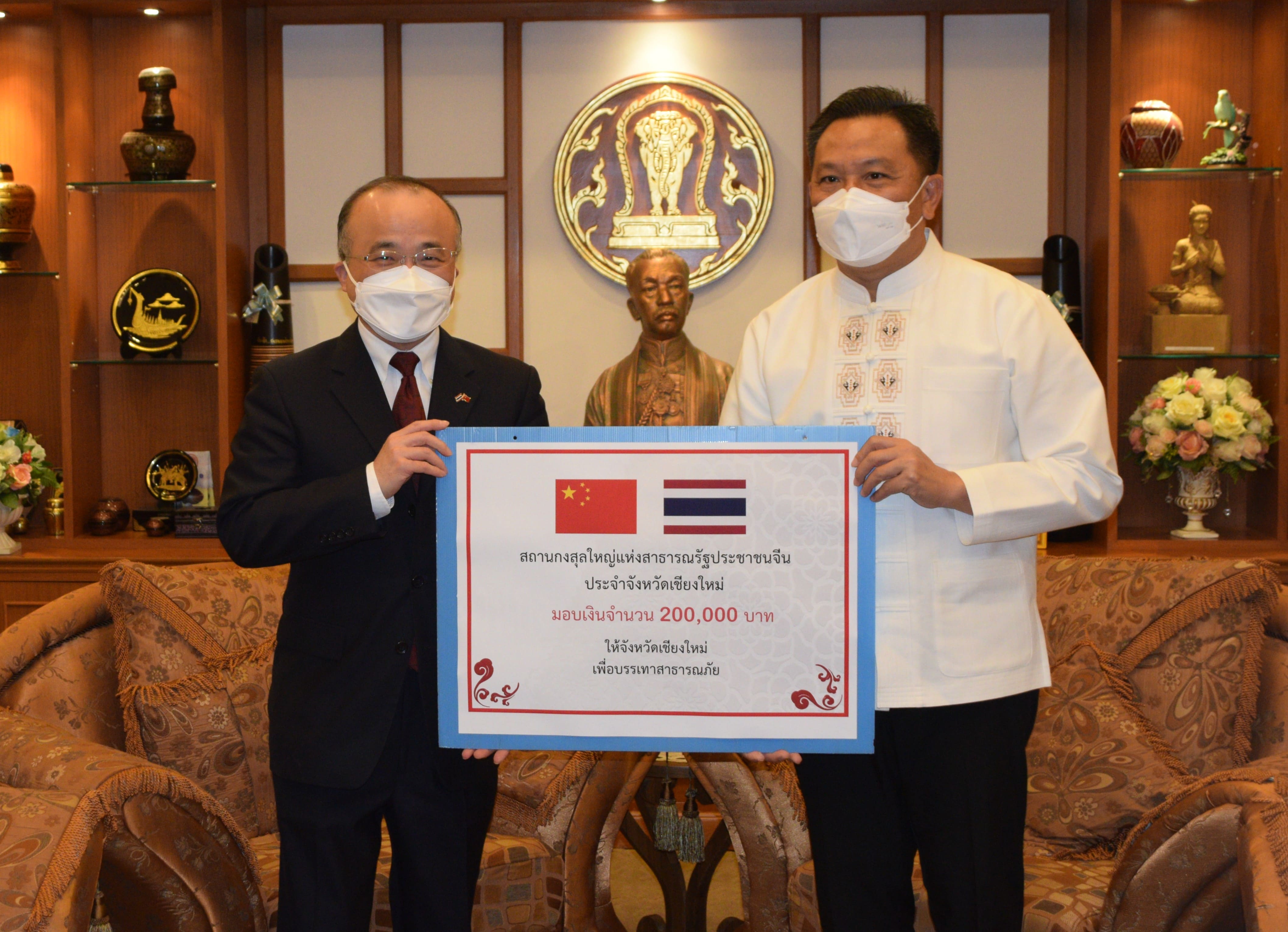 พร้อมกันนี้ นายอู๋ จื้ออู่ กงสุลใหญ่สาธารณรัฐประชาชนจีน ประจำเชียงใหม่ ได้มอบเงินสนับสนุนช่วยเหลือในการบรรเทาสาธารณภัยในพื้นที่จังหวัดเชียงใหม่ จำนวน 200,000 บาท โดยจังหวัดเชียงใหม่ จะนำเงินดังกล่าว ไปใช้ให้เป็นไปตามวัตถุประสงค์ และระเบียบของกฎหมาย เพื่อให้เกิดประโยชน์สูงสุด ต่อผู้ประสบภัยต่างๆ ในจังหวัดเชียงใหม่ต่อไป