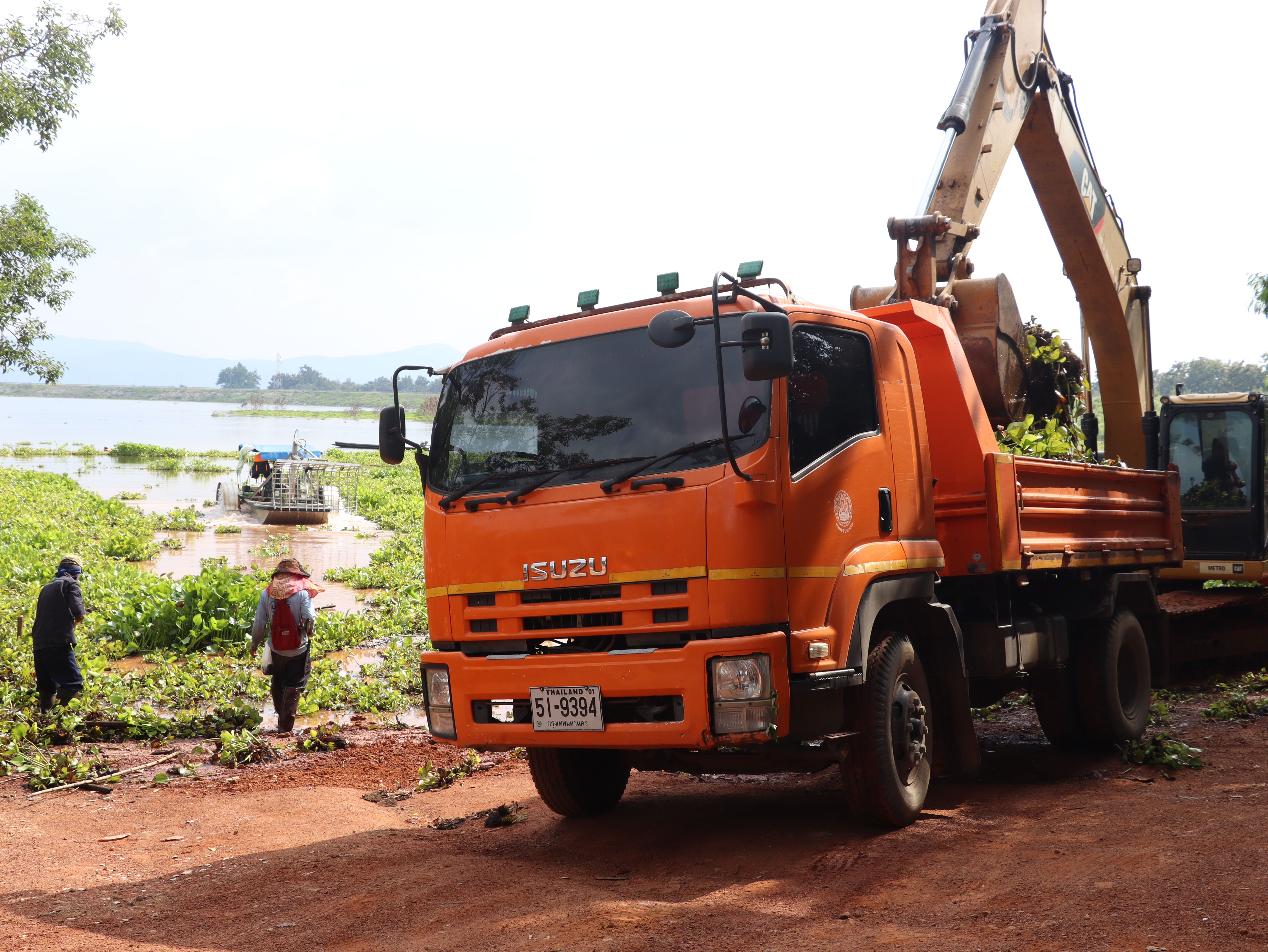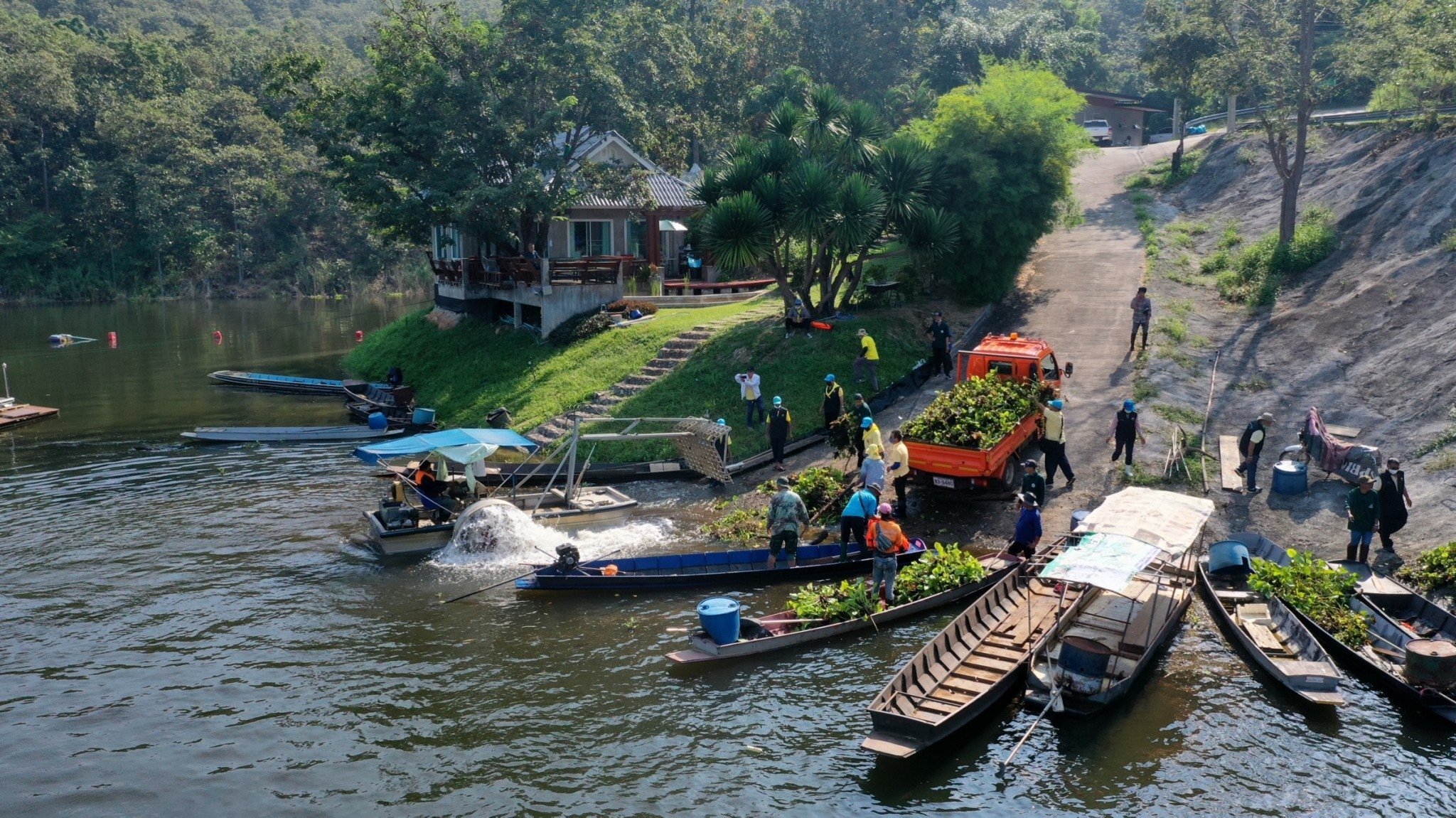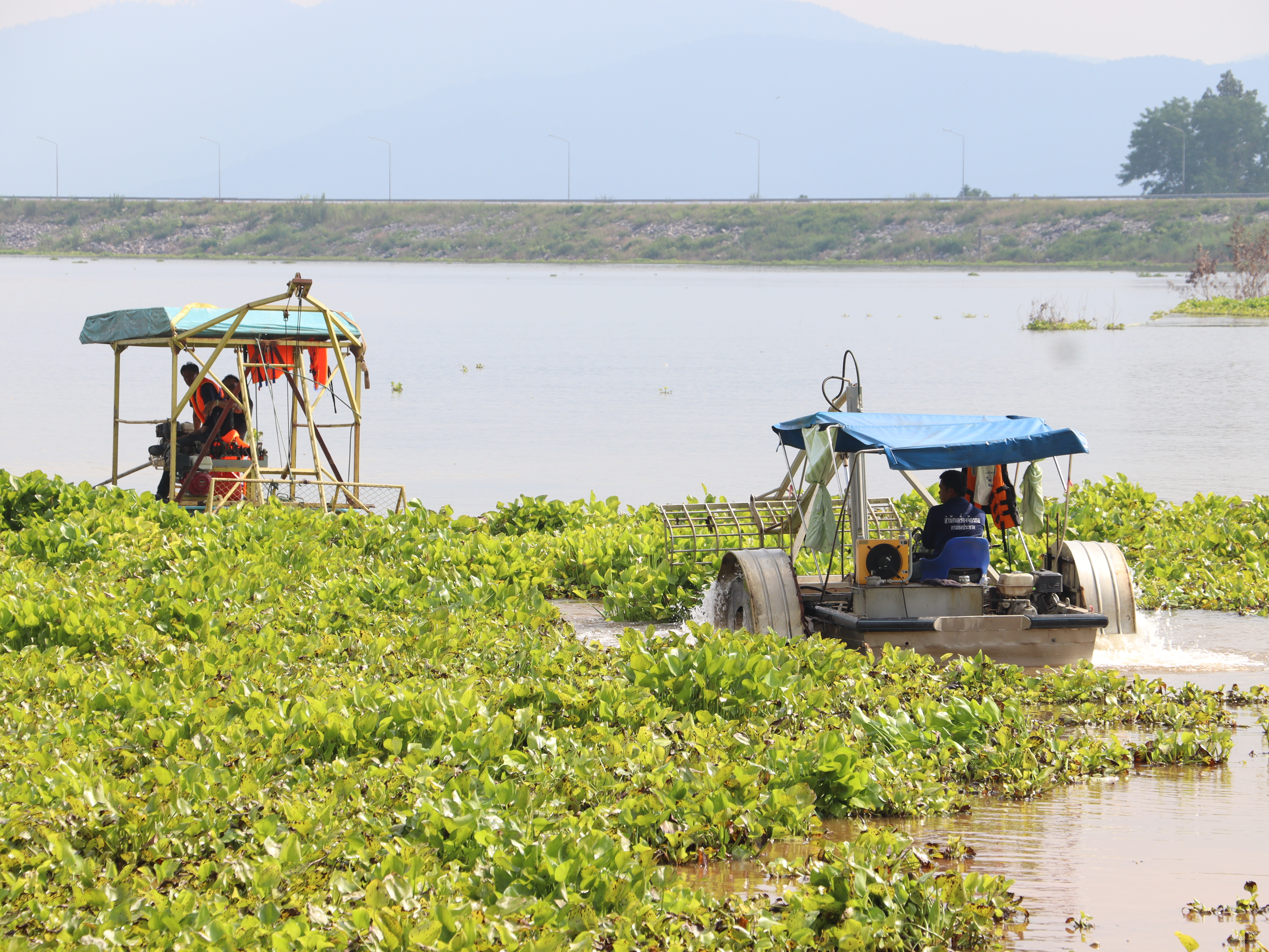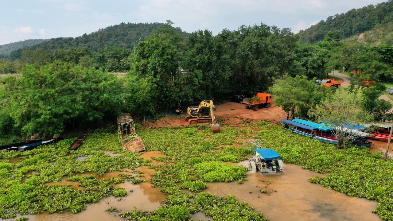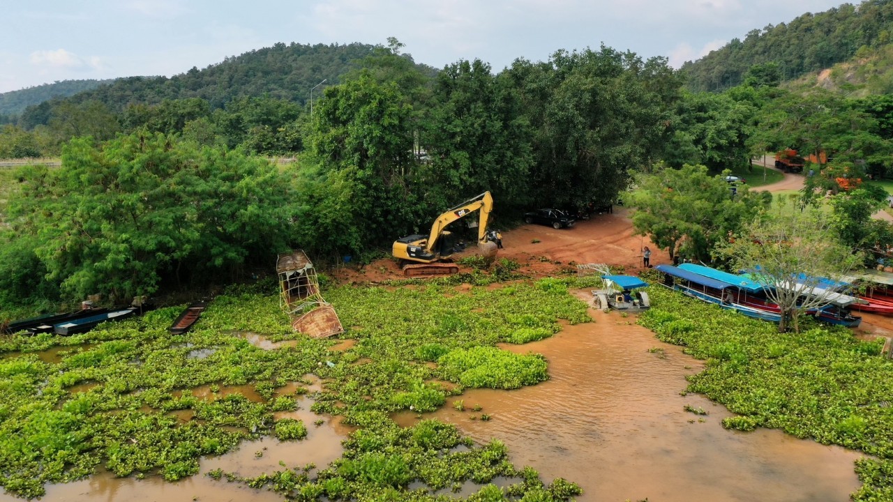 วันที่ 25 ต่อเนื่องถึงวันที่ 27 ต.ค. 65 นายชัยณรงค์ นันตาสาย นอภ.แม่แตง พร้อมด้วย นายเฉลิมเกียรติ อินทกนก ผู้อำนวยการ โครงการส่งน้ำและบำรุงรักษาแม่แฝก-แม่งัดสมบูรณ์ชล นำกำลังเจ้าหน้าที่ฝ่ายปกครอง อ.แม่แตง เจ้าหน้าที่โครงการส่งน้ำและบำรุงรักษาแม่แฝก เจ้าหน้าที่อุทยานแห่งชาติศรีลานนา เจ้าหน้าที่โรงไฟฟ้าเขื่อนแม่งัดสมบูรณ์ชล ชาวบ้าน อ.แม่แตง และผู้ประกอบการแพท่องเที่ยวเขื่อนแม่งัด รวมกว่า 200 คน พร้อมกับเครื่องจักรกล และเรือกำจัดวัชพืชในน้ำ ช่วยกันกำจัดผีกตบชวาที่ไหลมารวมกันหน้าที่ทำการอุทยานแห่งชาติศรีลานนา หลังเจ้าหน้าที่และชาวประมงพื้นบ้าน ตลอดจนผู้ประกอบการแพท่องเที่ยว นำเรือหางยาวและเรือกำจัดวัชพืชในน้ำรวม 20 ลำ ช่วยกันผลักผักตบชวาที่ลอยอยู่ตามจุดต่างๆ หน้าเขื่อนมารวมกัน ก่อนจะใช้รถแบ็คโฮตักผักตบขึ้นรถบรรทุกนำไปกองรวมกันไว้