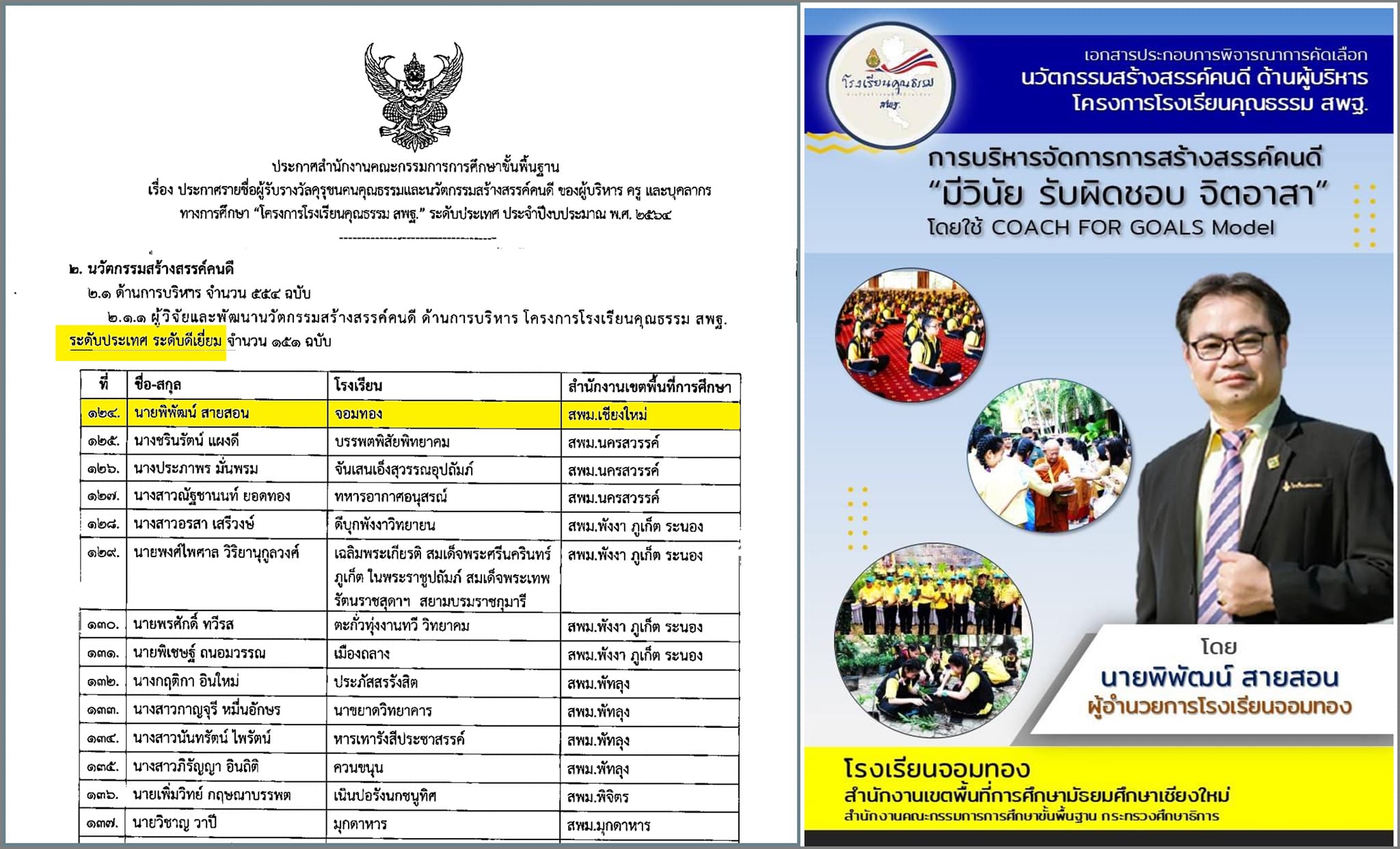 ผอ.รร.จอมทอง รับรางวัล คุรุชนคนคุณธรรม “ระดับประเทศ”